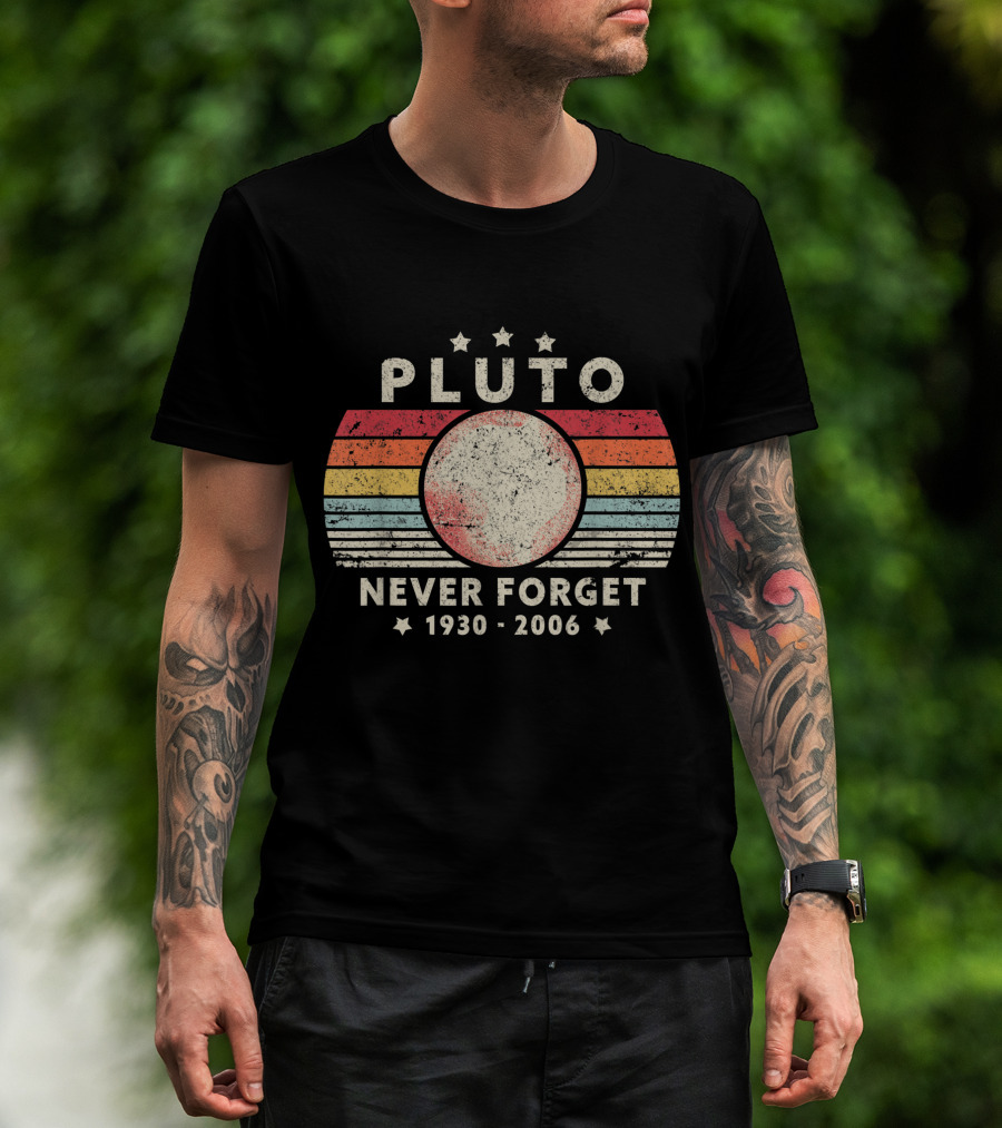 Pluto Never Forget 1930-2006 Retro Style Funny Space Stars T-Shirt