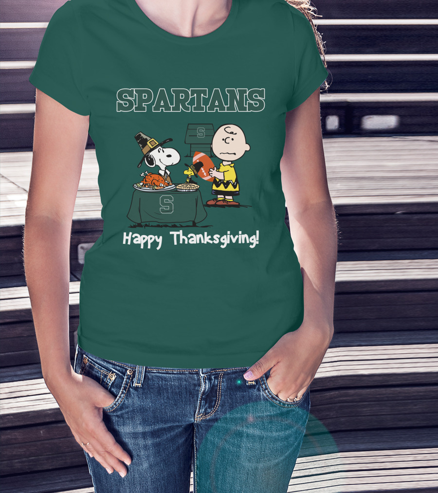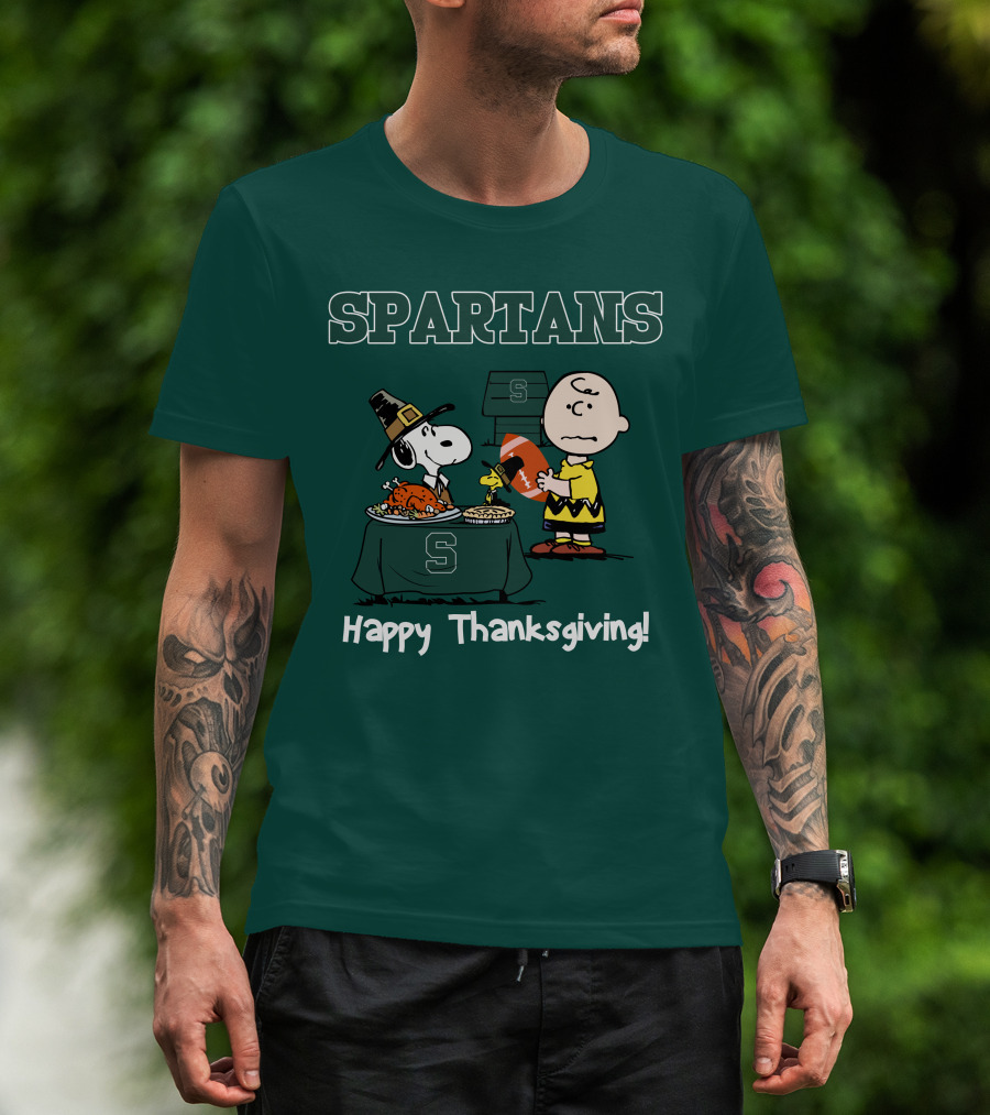 Spartans Snoopy Charlie Brown Thanksgiving Football T-Shirt