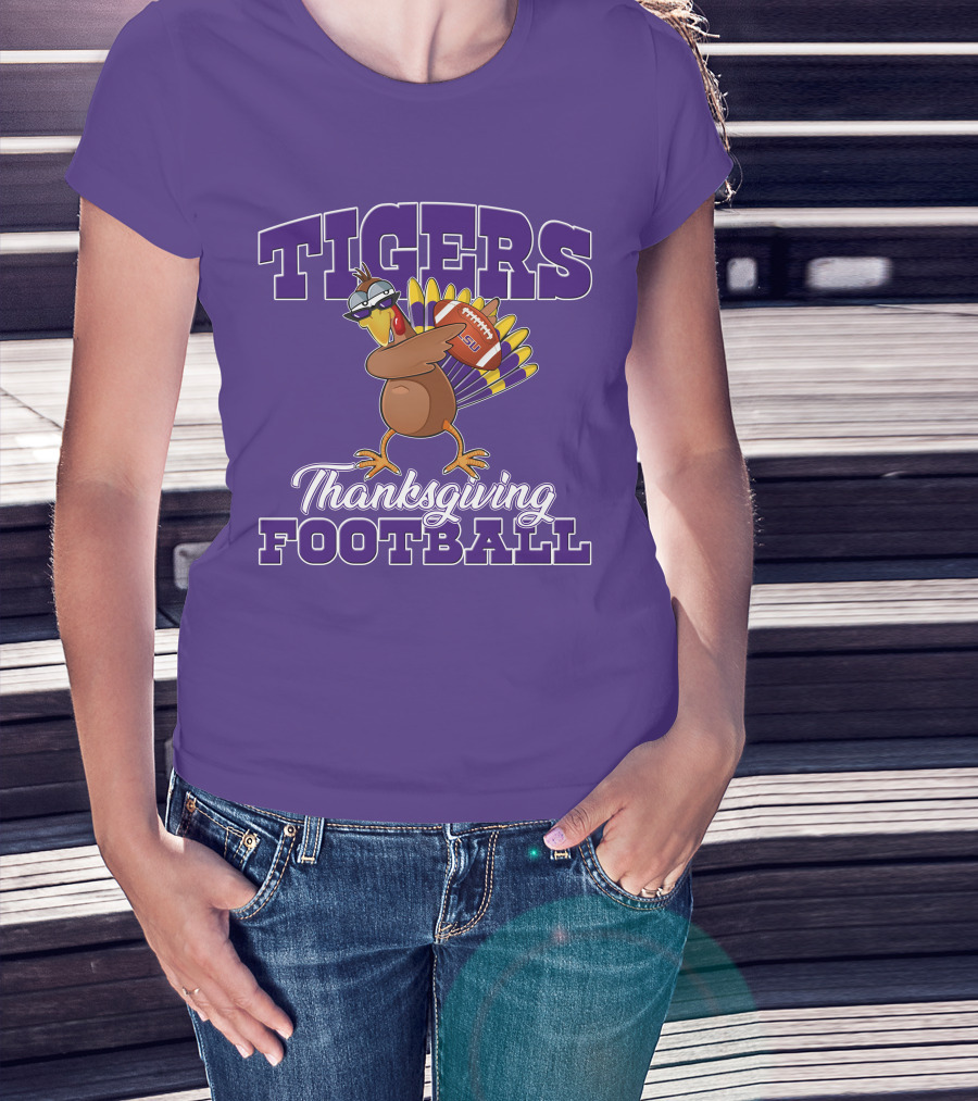 The Tigers Thanksgiving Football LSU Turkey T-shirt is designed for everyday wear and a consistent fit. Fabric is pre-shrunk ring-spun cotton with durable stitching. See the size chart below for exact measurements.