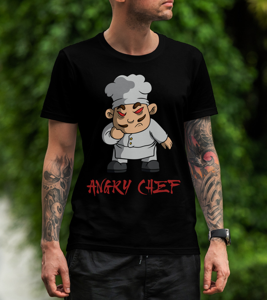 The ANGRY CHEF T-shirt is designed for everyday wear and a consistent fit. Fabric is pre-shrunk ring-spun cotton with durable stitching. See the size chart below for exact measurements.