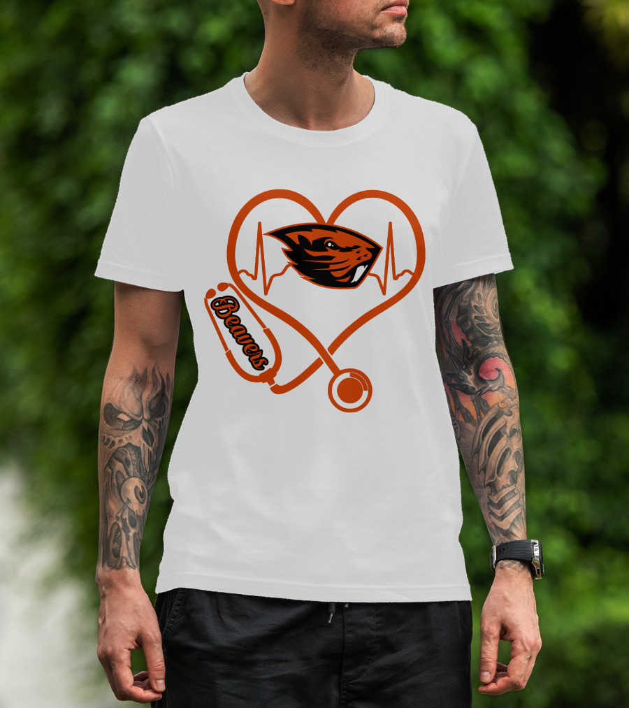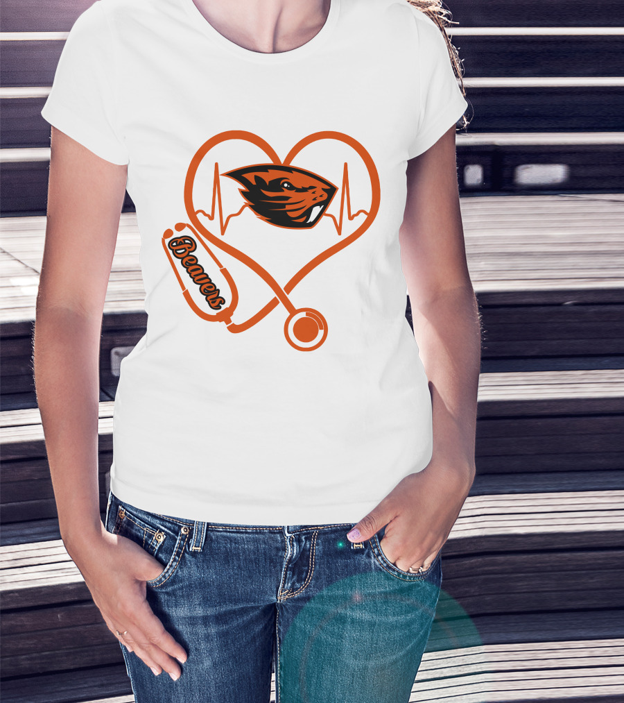 Beavers Nurse Love Oregon State Heartbeat T-Shirt