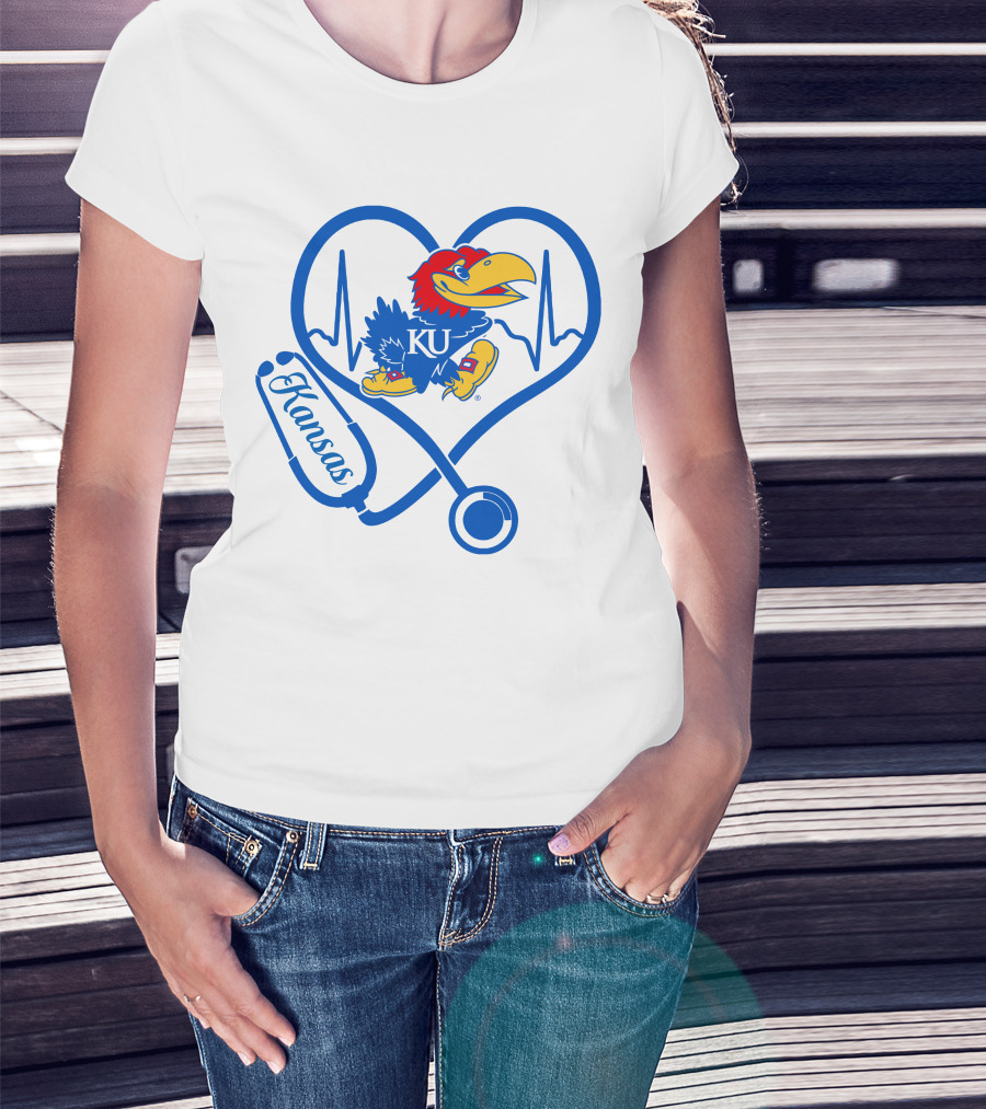 Nurse Love Kansas Jayhawks Heartbeat Stethoscope KU T-Shirt