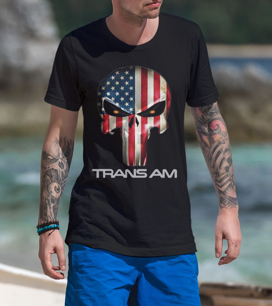 The Trans Am American Flag Skull T-shirt is designed for everyday wear and a consistent fit. Fabric is pre-shrunk ring-spun cotton with durable stitching. See the size chart below for exact measurements.