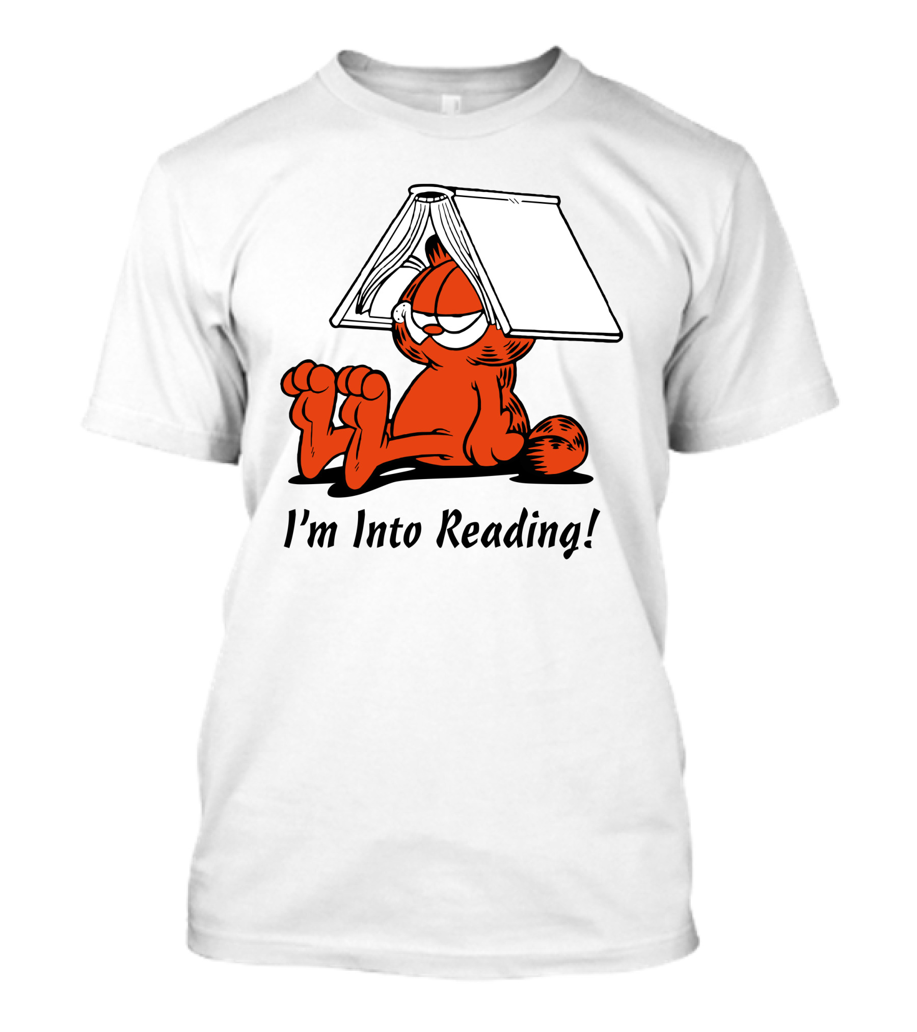 The I'm Into Reading Garfield T-shirt is designed for everyday wear and a consistent fit. Fabric is pre-shrunk ring-spun cotton with durable stitching. See the size chart below for exact measurements.