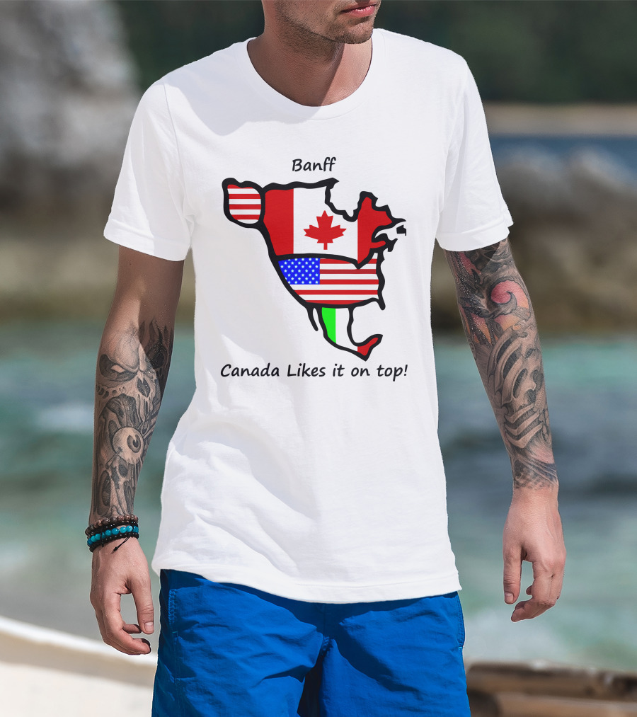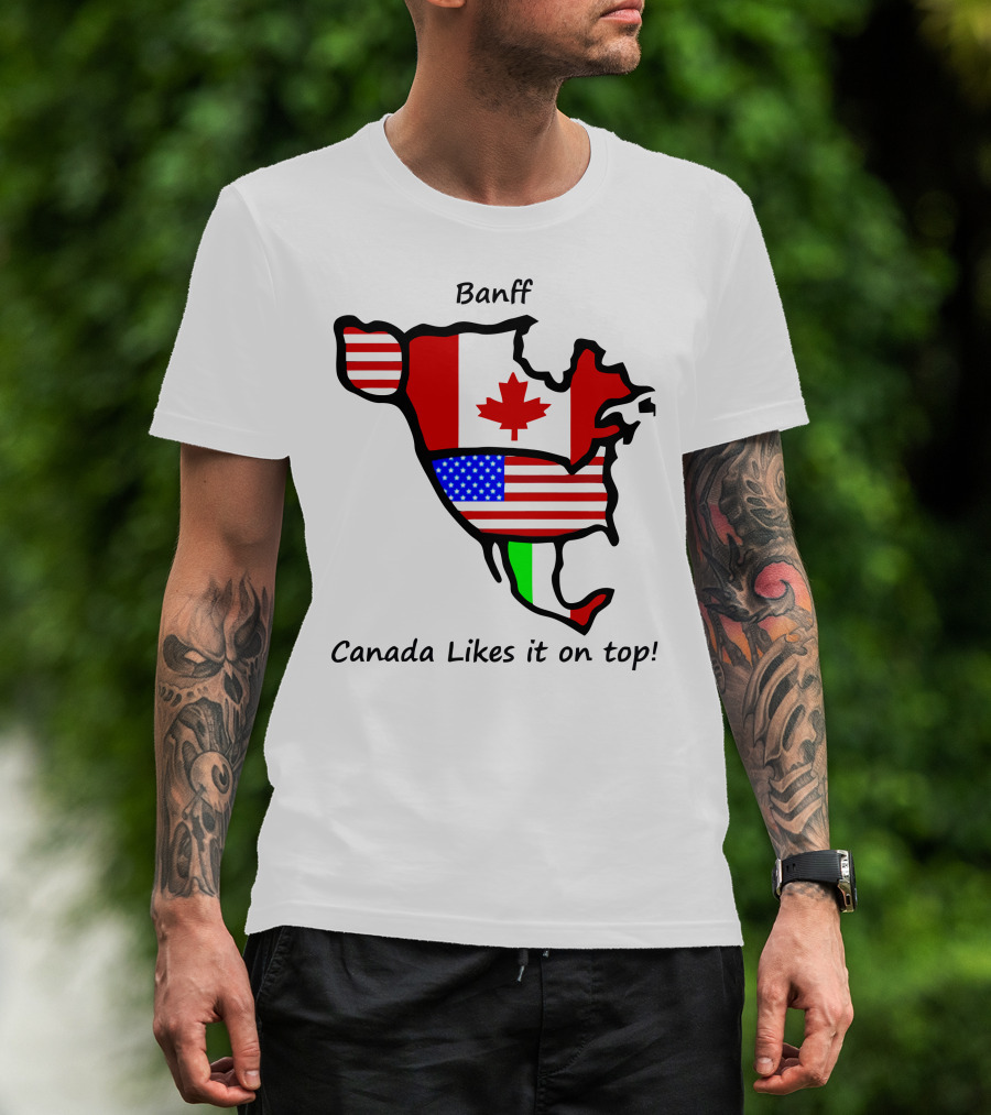 Banff Canada Likes It On Top North American Flags Map T-Shirt