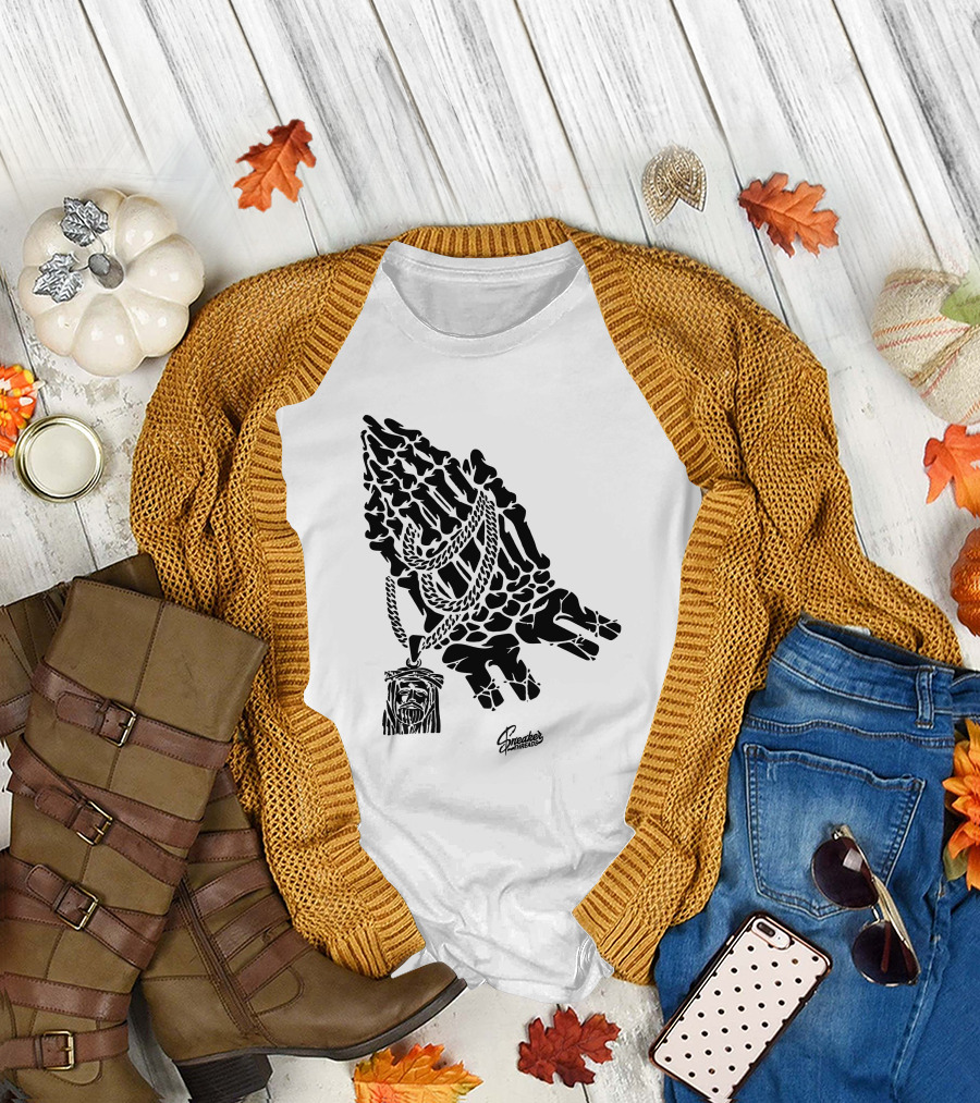 Spreaders Threads Bone Hand Necklace Pray Sneaker T-Shirt
