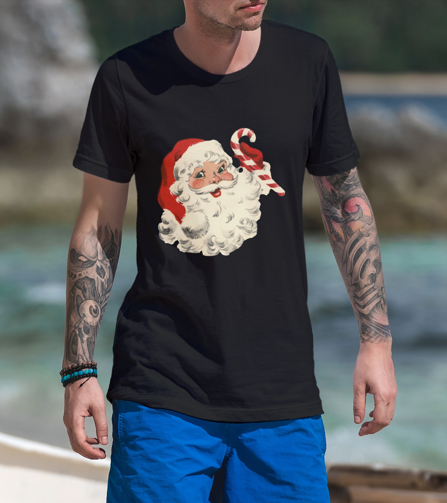Retro Santa Claus Candy Cane Vintage Christmas T-Shirt