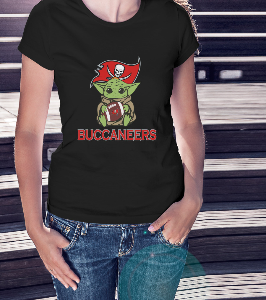 Buccaneers Baby Yoda Holding Football Star Wars T-Shirt