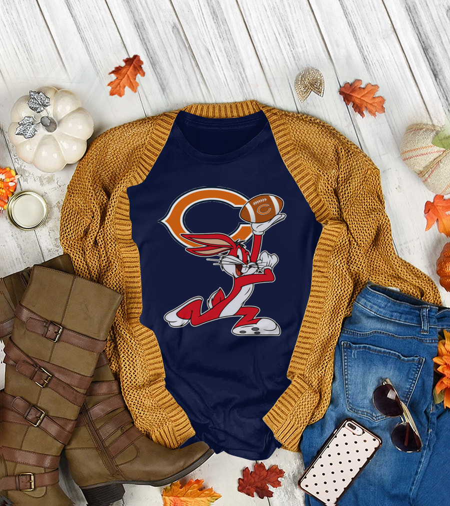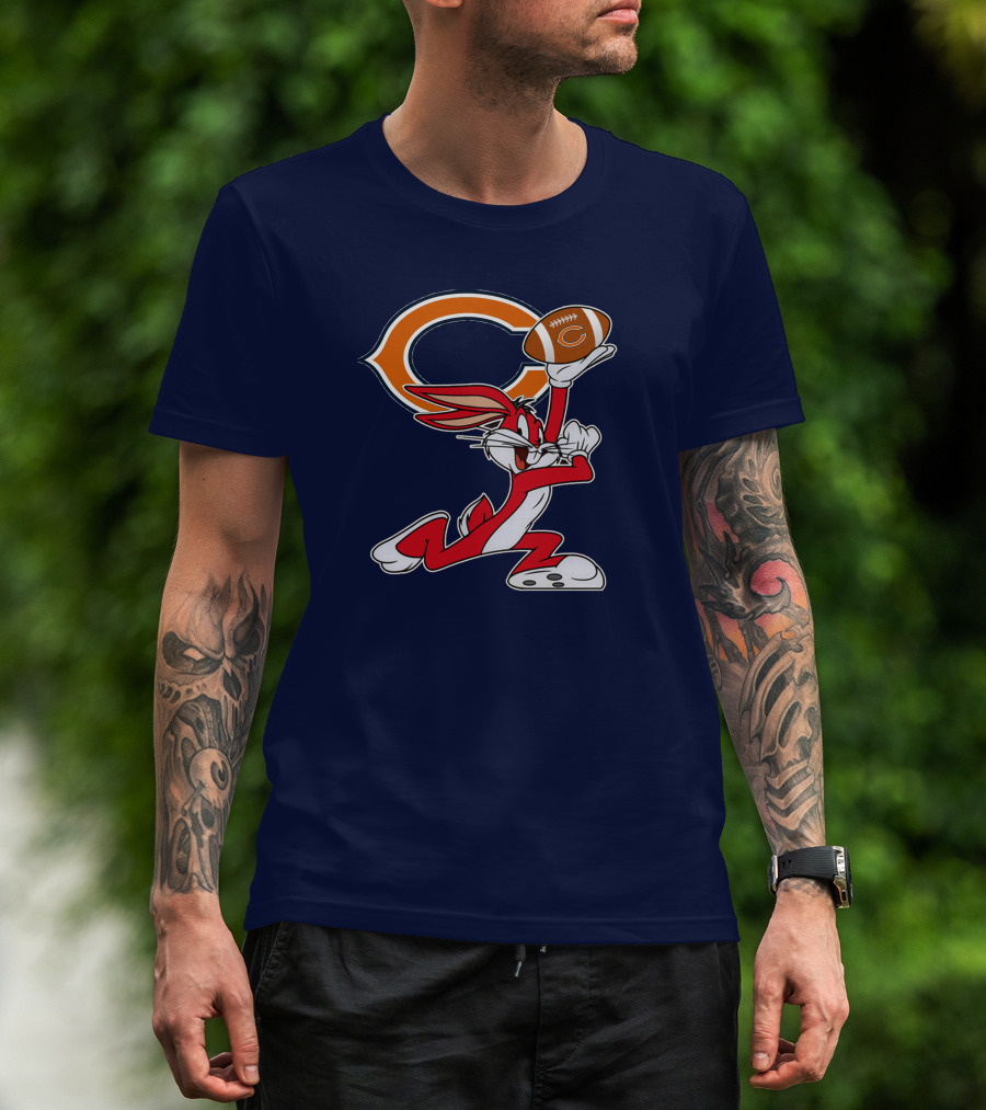 The Chicago Bears Bugs Bunny Chiefs Football T-shirt is designed for everyday wear and a consistent fit. Fabric is pre-shrunk ring-spun cotton with durable stitching. See the size chart below for exact measurements.