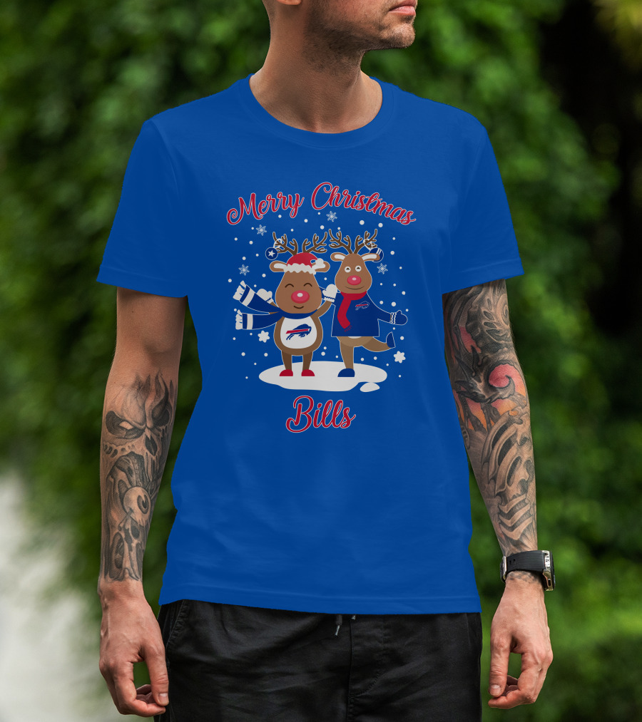 Merry Christmas Buffalo Bills Reindeer Snowflakes T-Shirt