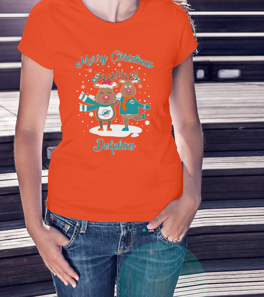 Merry Christmas Dolphins Reindeer Snowflakes T-Shirt