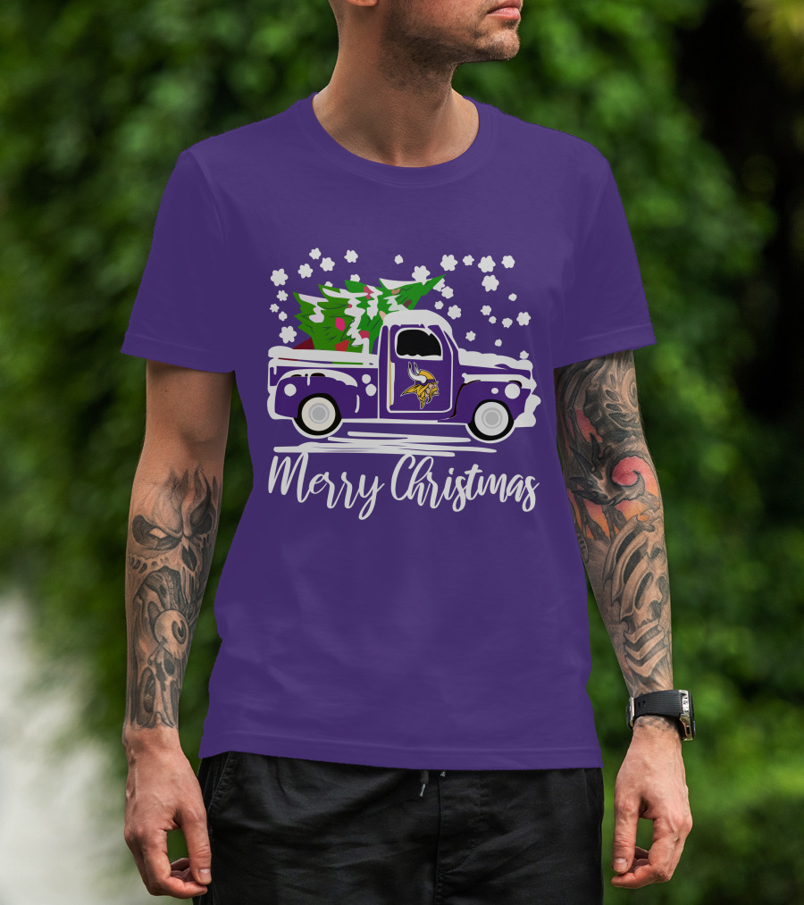 Merry Christmas Minnesota Vikings Vintage Car With Christmas Tree T-Shirt