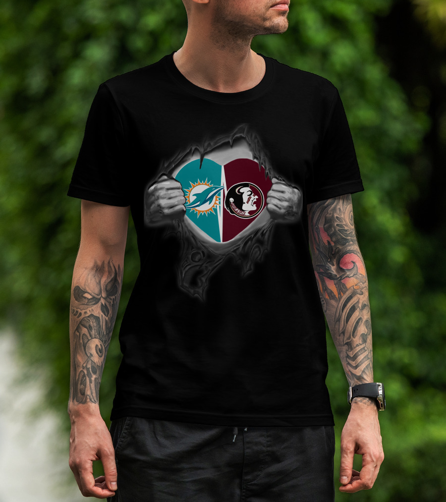Miami Dolphins FSU Seminoles Heart Symbol Hands T-Shirt