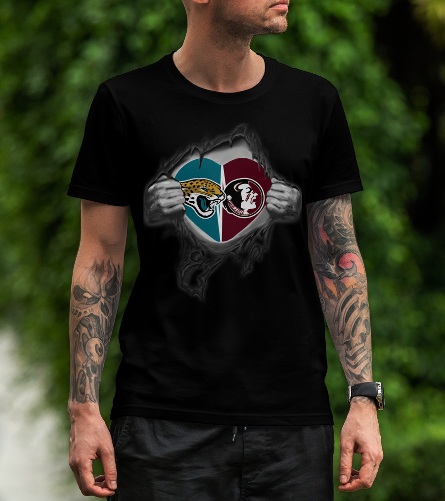 Jaguars Florida State Seminoles Heart Tornчерез T-Shirt