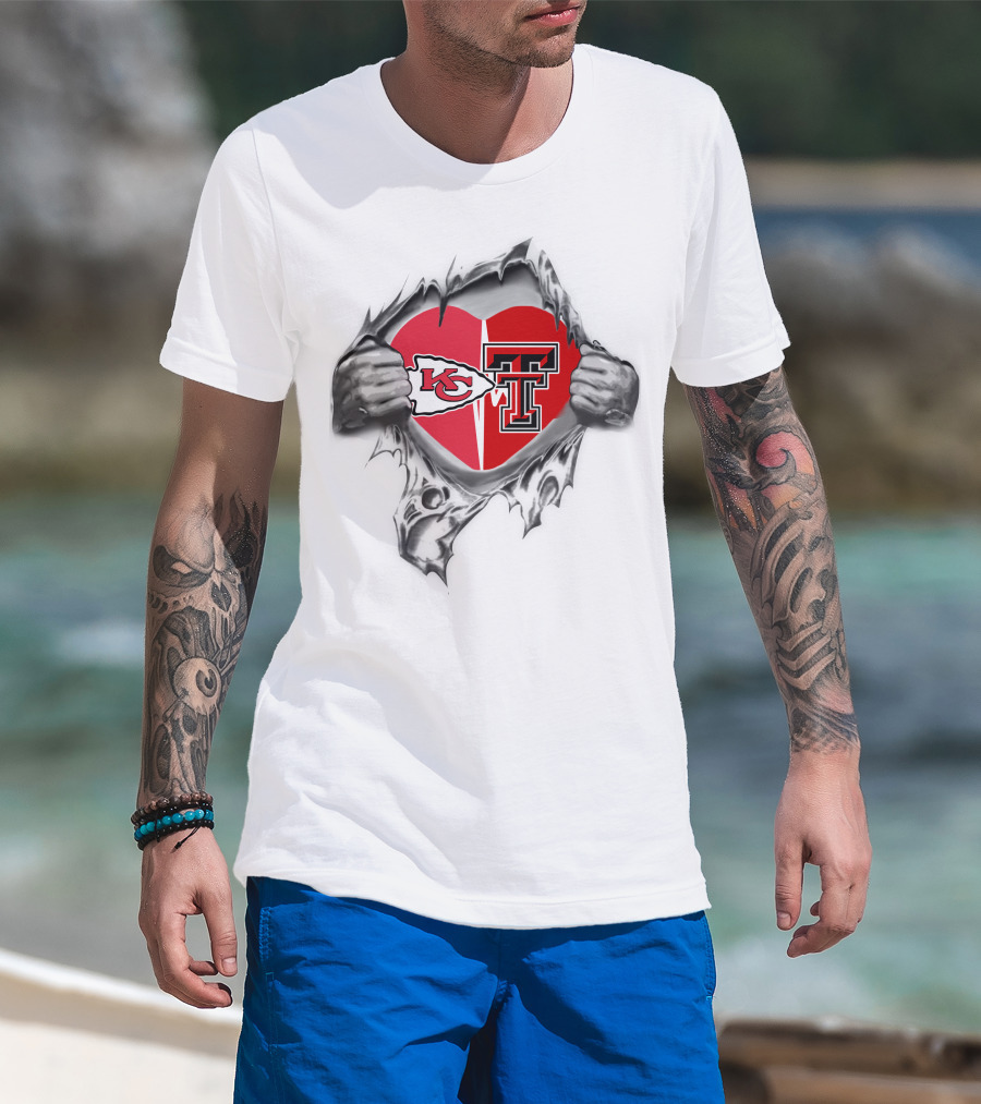 Kansas City Chiefs Texas Tech Heart Logos Torn T-Shirt