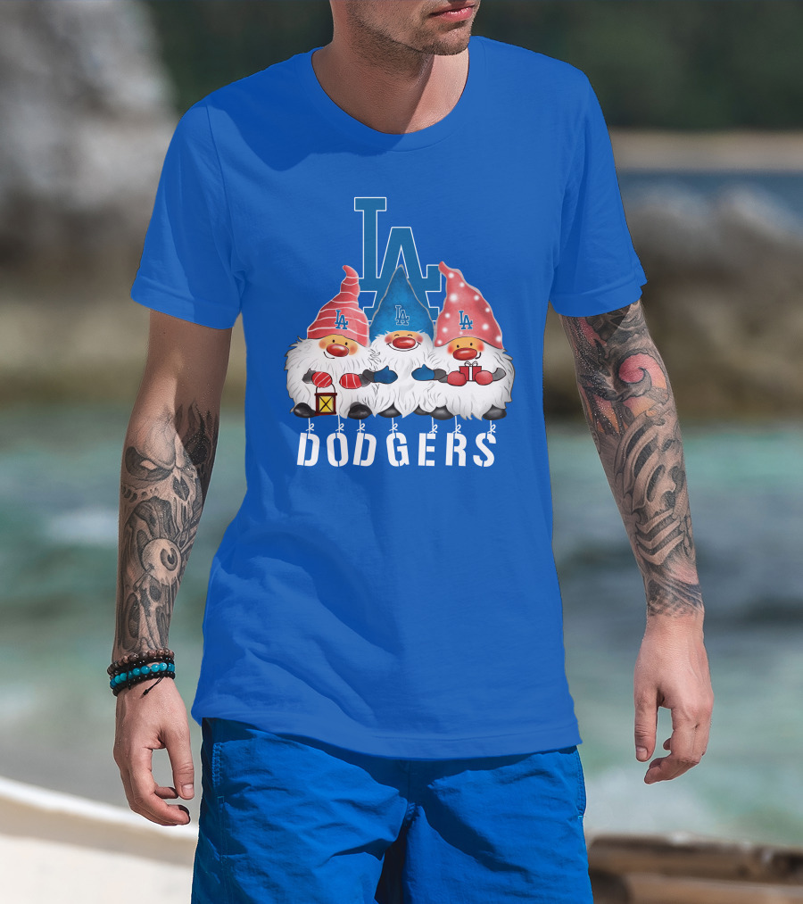 The Los Angeles Dodgers Merry Christmas Happy Holidays Gnomes T-shirt is designed for everyday wear and a consistent fit. Fabric is pre-shrunk ring-spun cotton with durable stitching. See the size chart below for exact measurements.