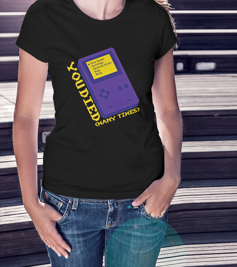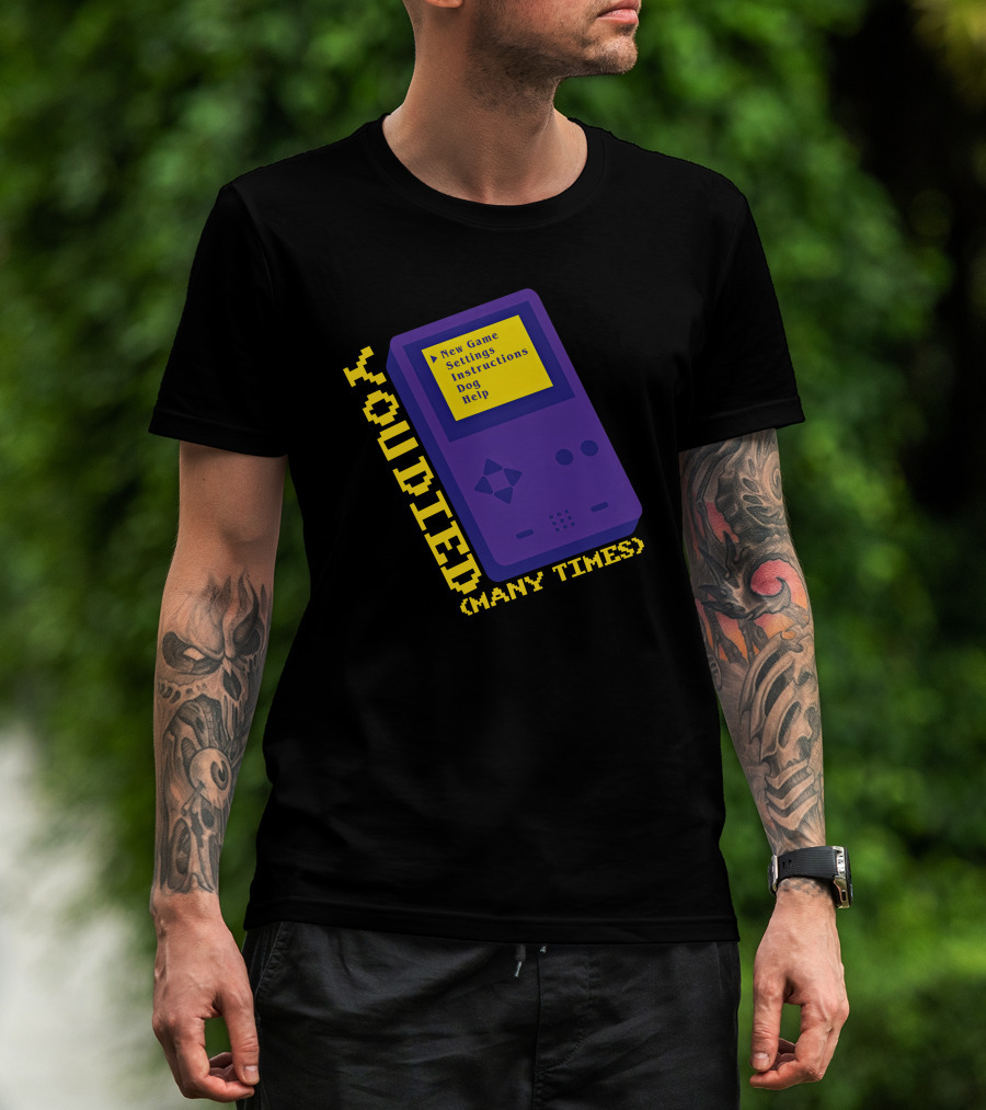 You Died Many Times New Game Settings Instructions Dog Help Seth Everman Represent Gameboy T-Shirt