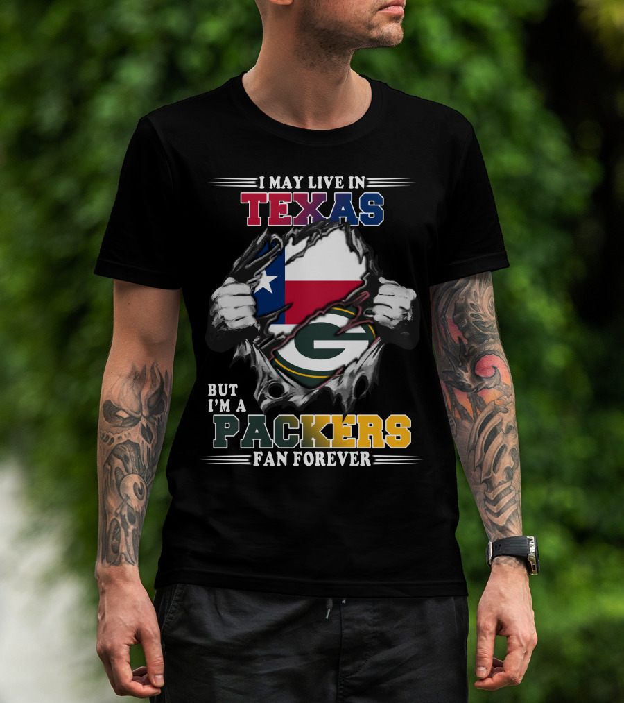 I May Live In Texas But I'm A Packers Fan Forever T-Shirt