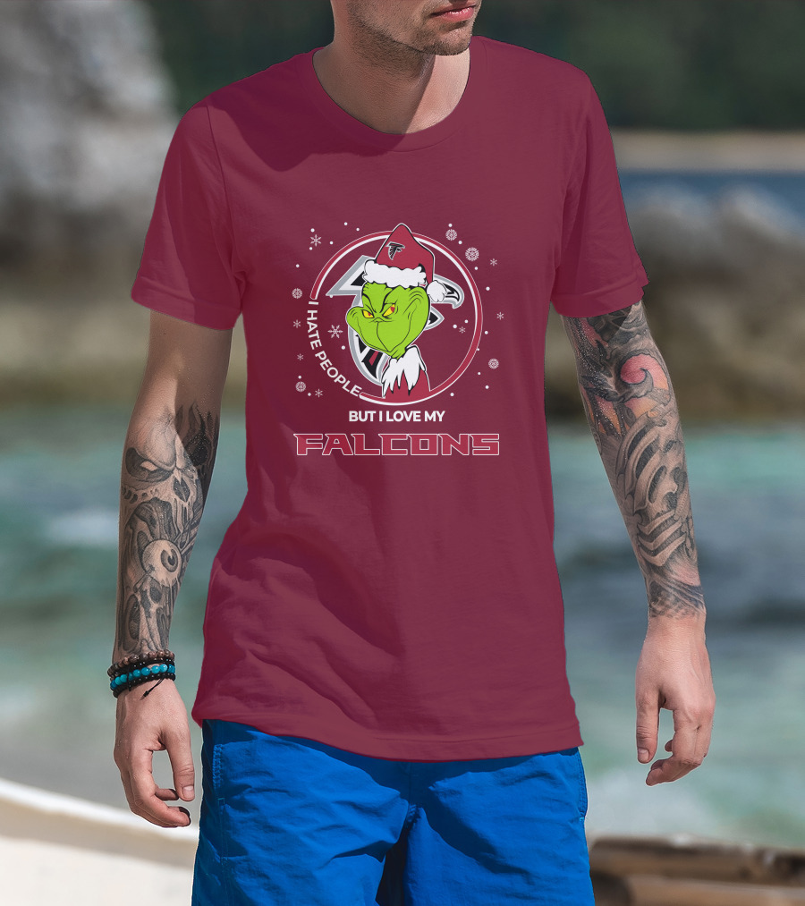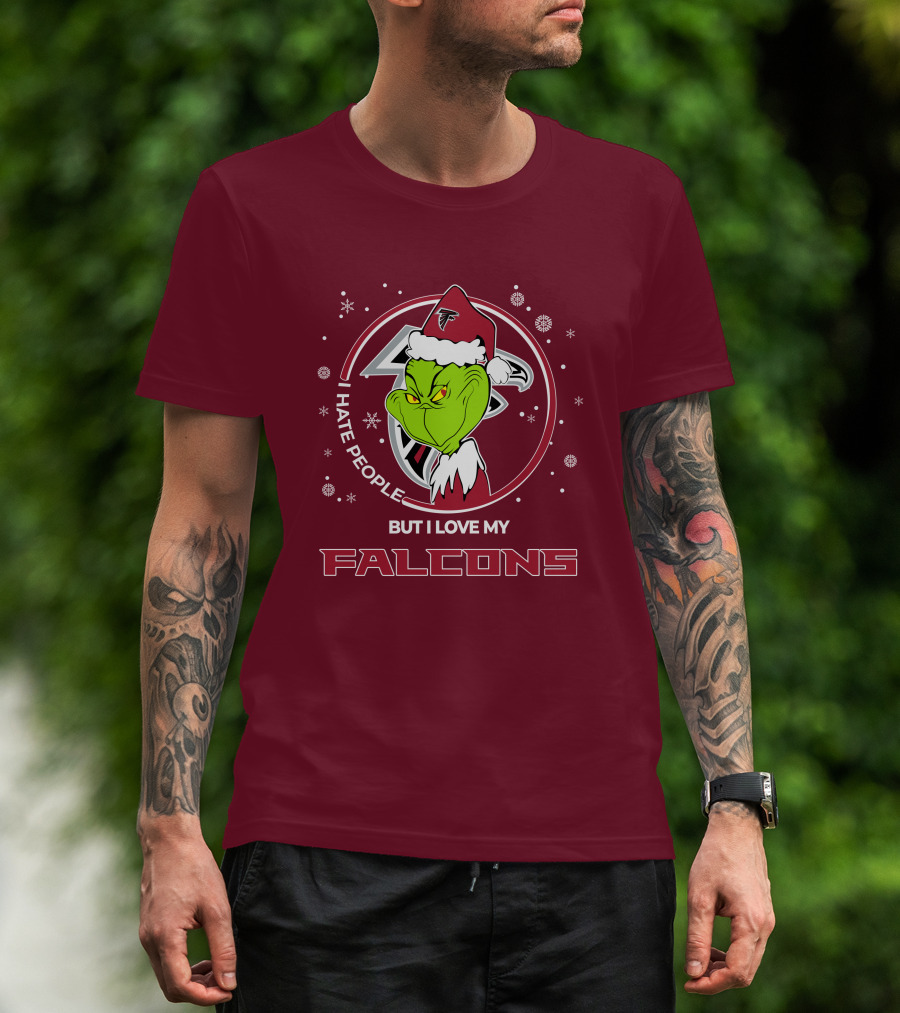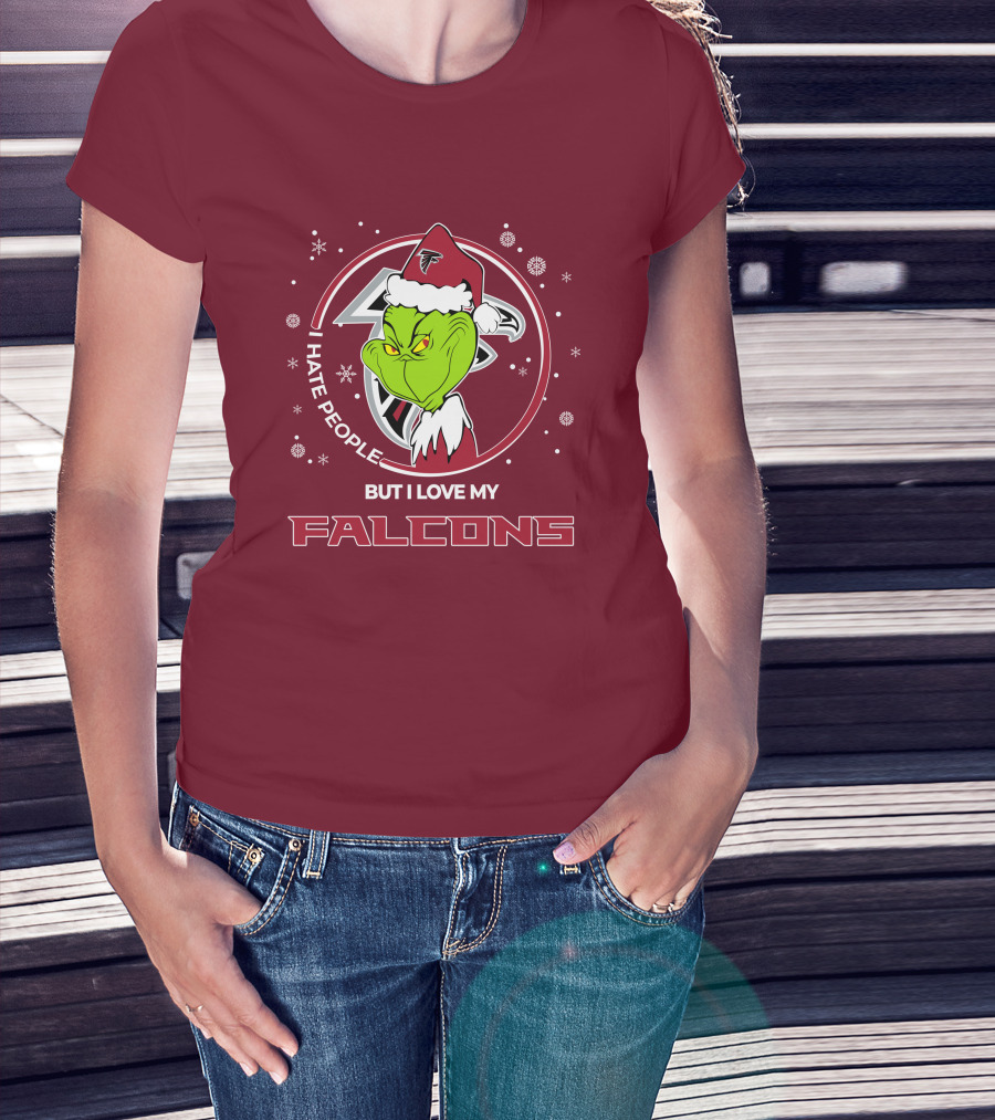 Christmas Grinch Santa I Hate People But I Love My Falcons T-Shirt