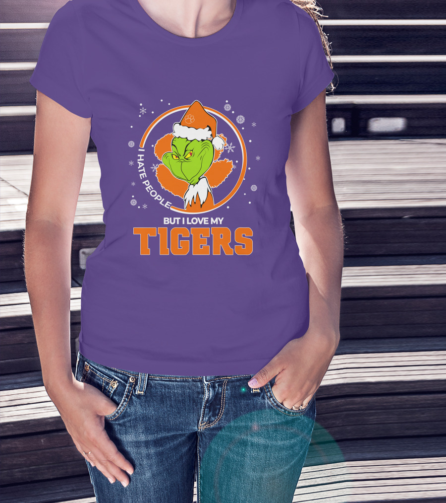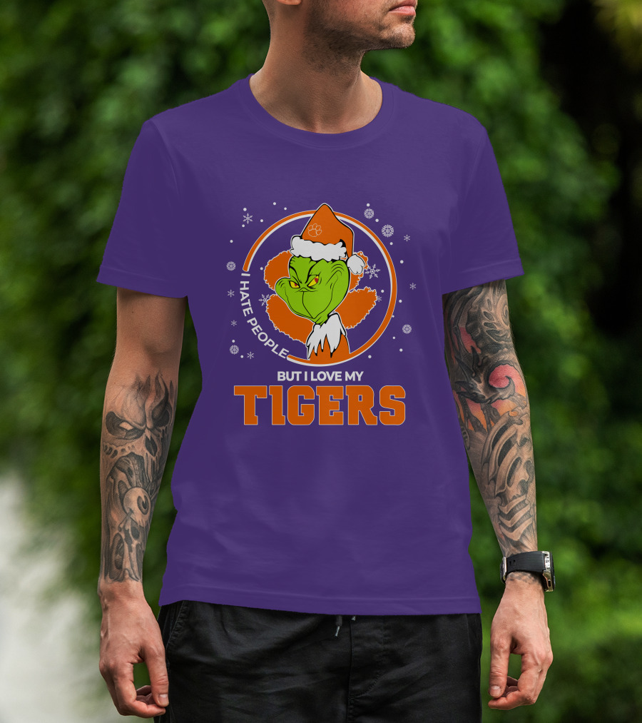 Christmas Grinch Santa I Hate People But I Love My Tigers T-Shirt