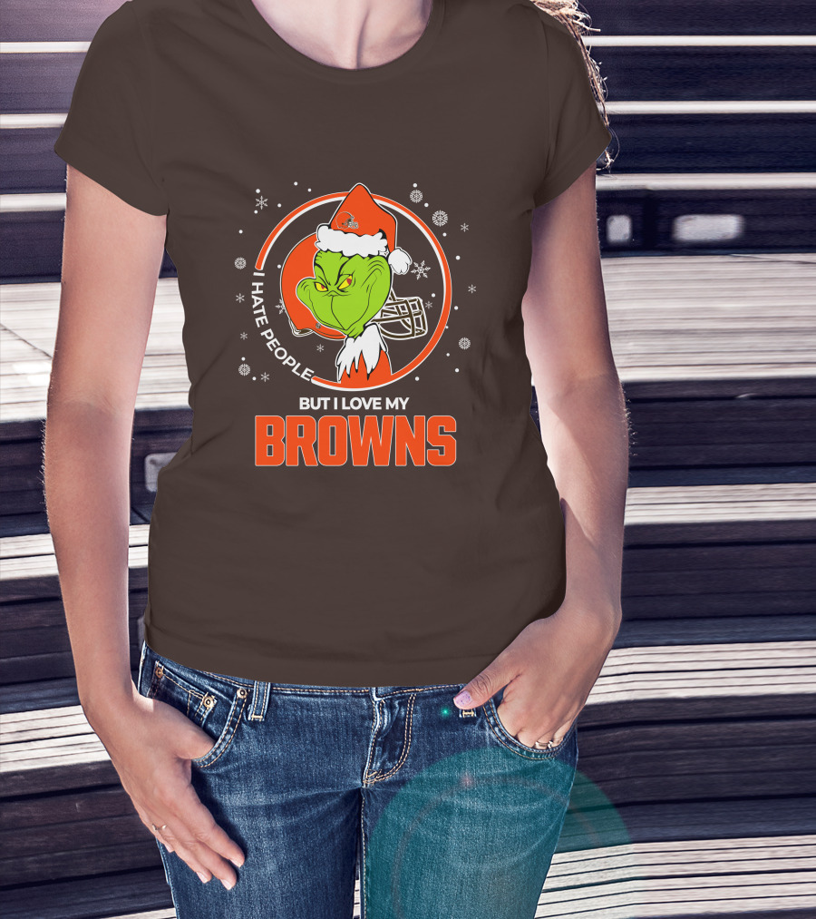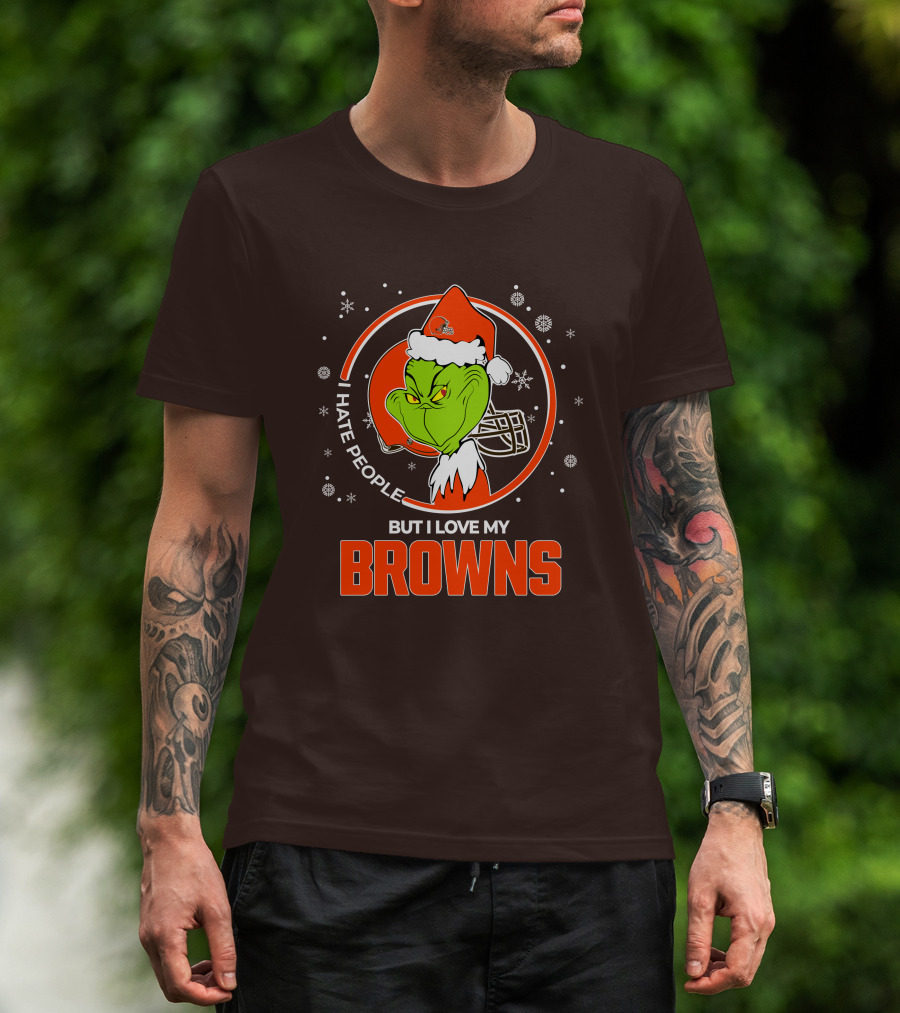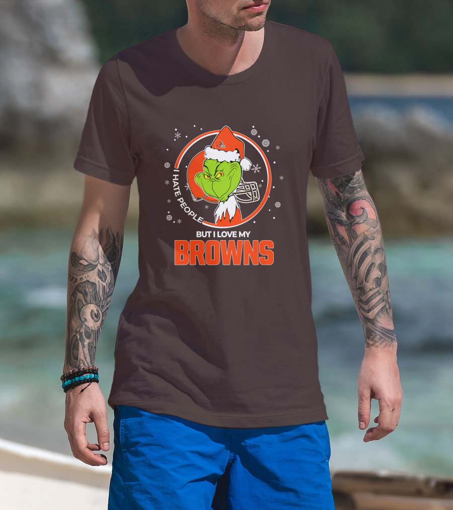 I Hate People But I Love My Cleveland Browns Grinch Santa Christmas T-Shirt