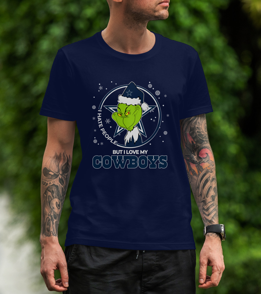 I Hate People But I Love My Dallas Cowboys Grinch Santa Christmas T-Shirt