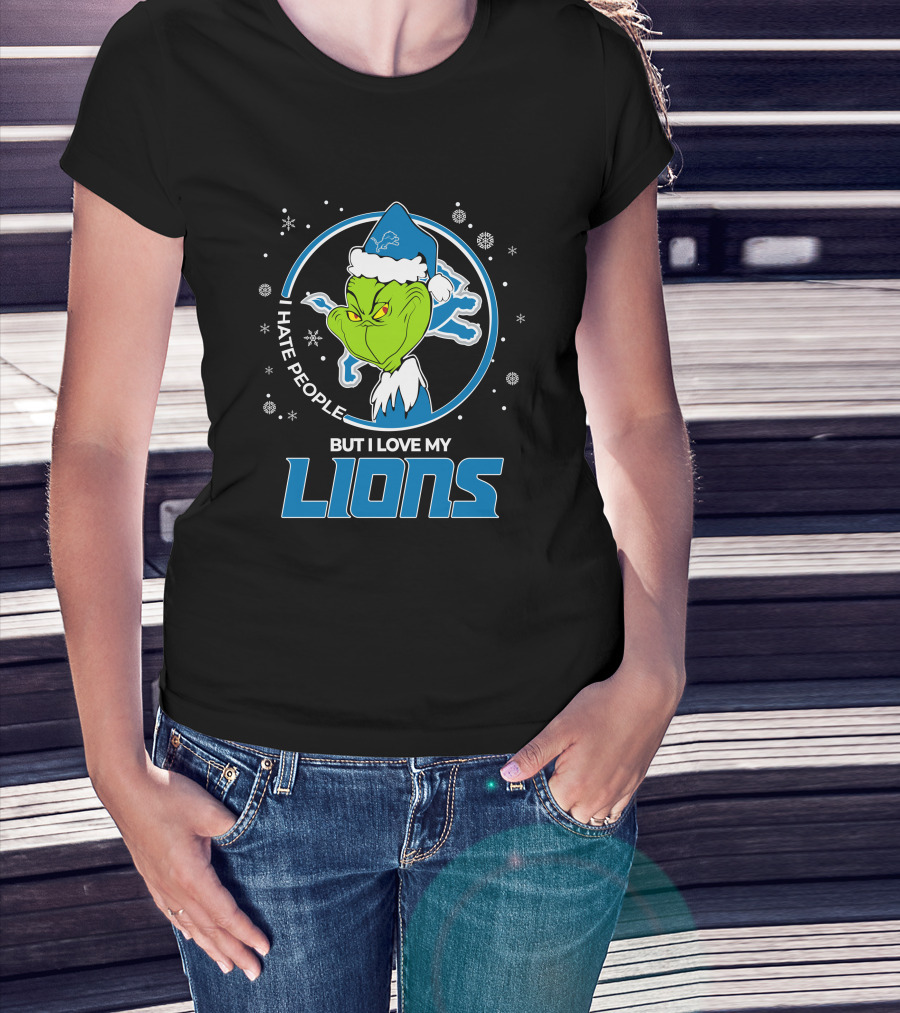 I Hate People But I Love My Detroit Lions Grinch Santa Christmas T-Shirt