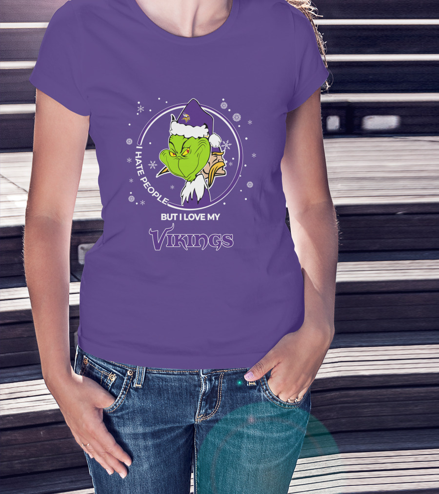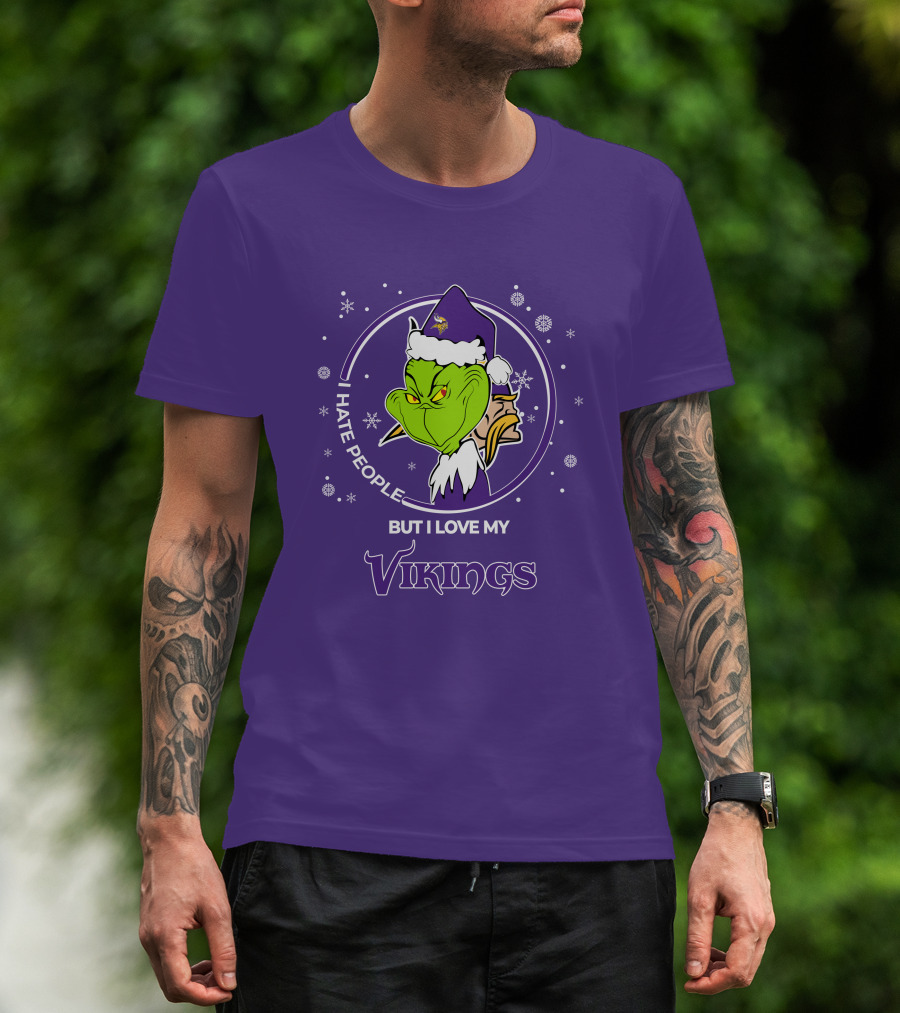 Christmas Grinch Santa I Hate People But I Love My Vikings T-Shirt