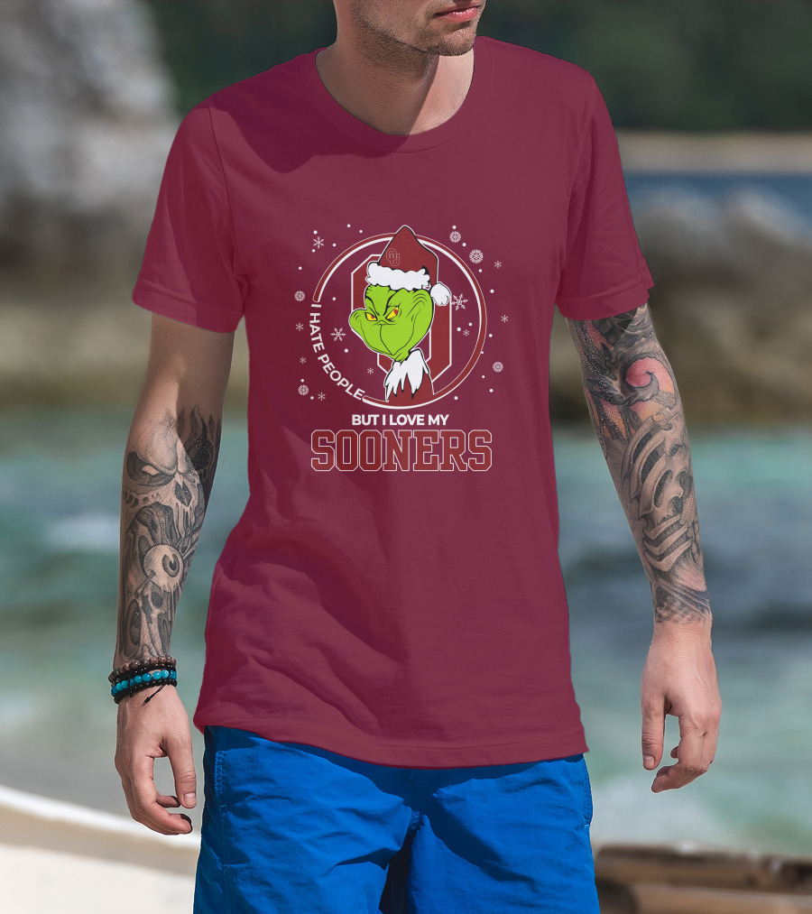 I Hate People But I Love My Sooners Grinch Christmas Santa T-Shirt