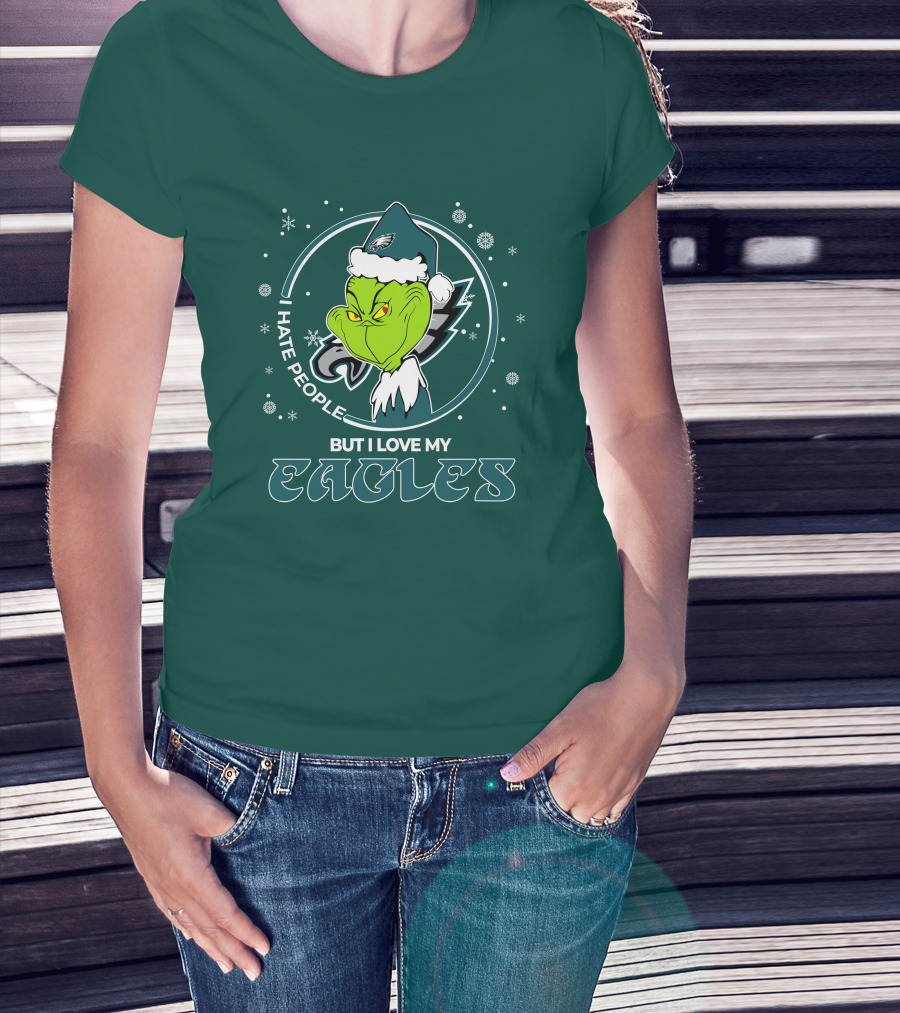 Christmas Grinch Santa I Hate People But I Love My Eagles Philadelphia T-Shirt