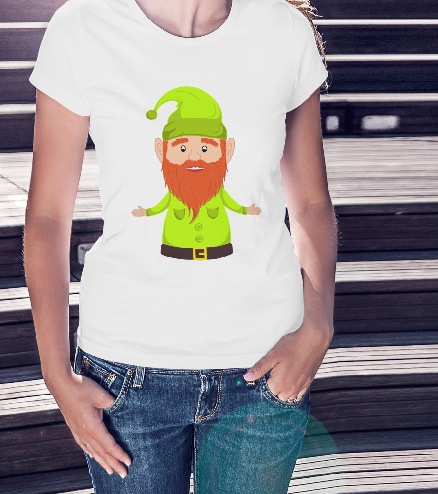 Gnome ELF Christmas Bright Green Hat Brown Belt Red Beard T-Shirt
