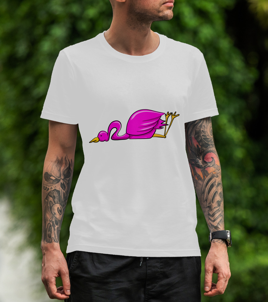 Stork Bird Flamingo Lying Down Cartoon T-Shirt
