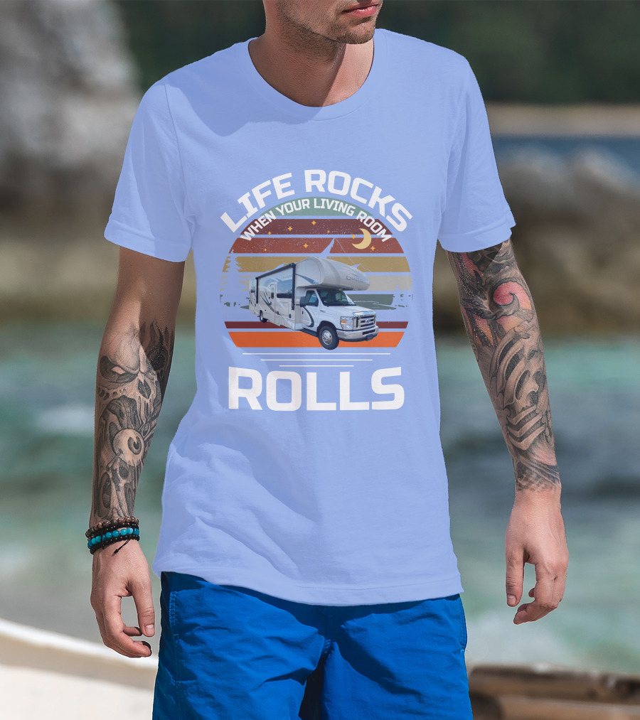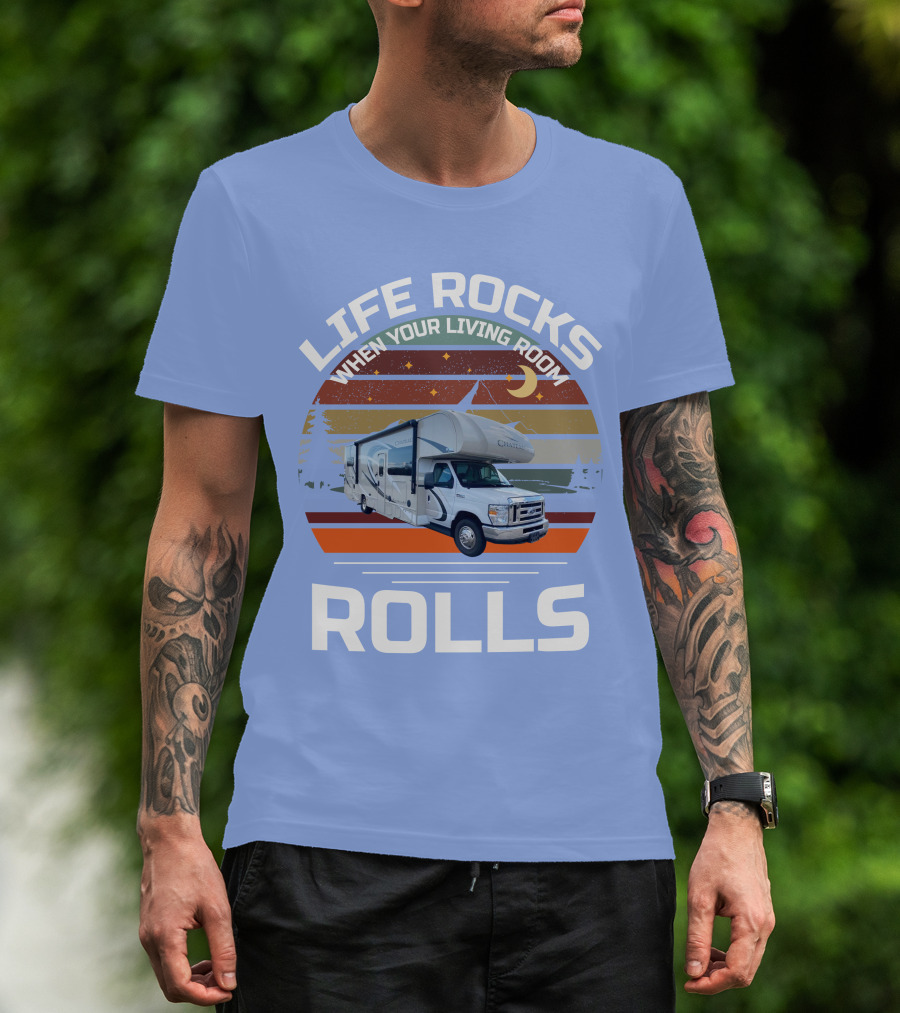 The Chateau 31W Your Living Room Moon Valley Motorhome Adventure T-shirt is designed for everyday wear and a consistent fit. Fabric is pre-shrunk ring-spun cotton with durable stitching. See the size chart below for exact measurements.