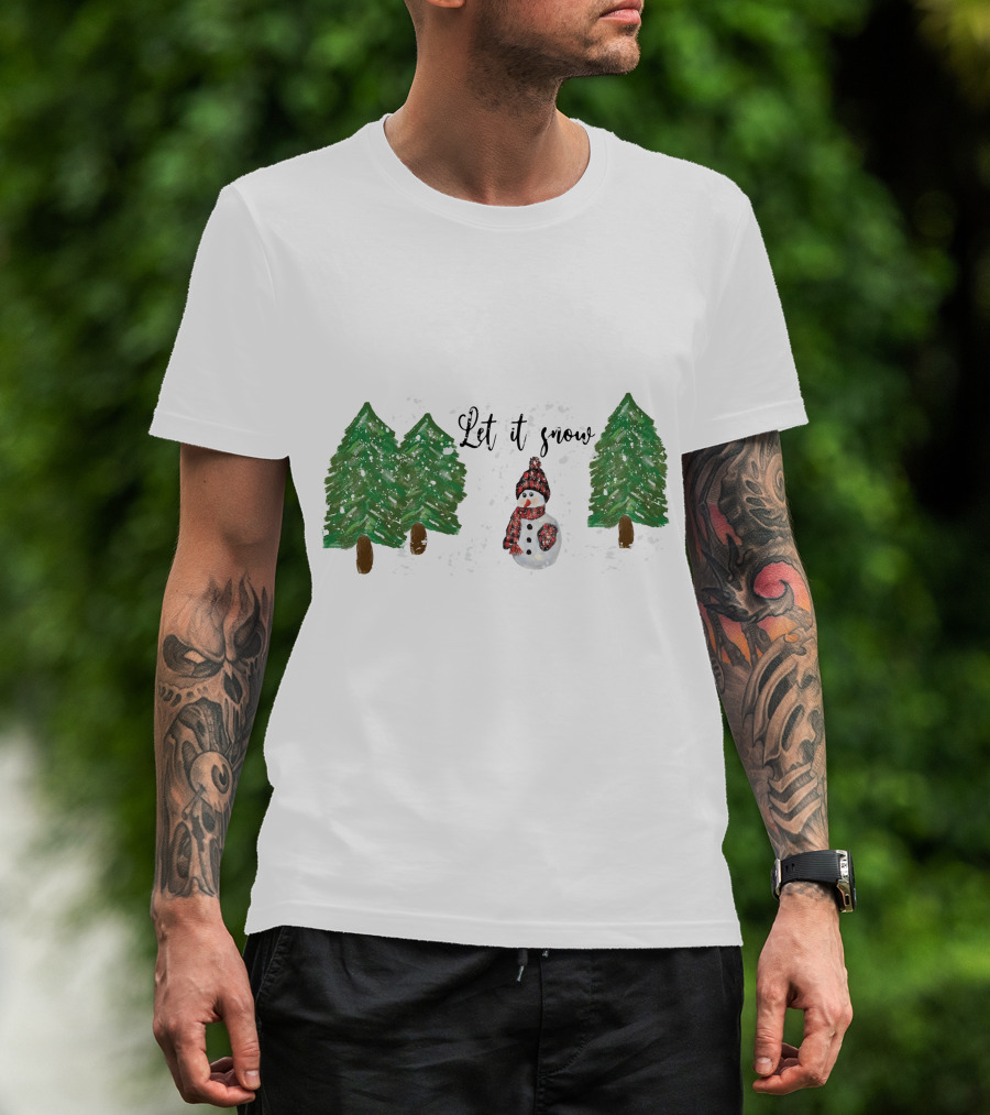 Let It Snow Watercolor Snowman And Pine Trees T-Shirt