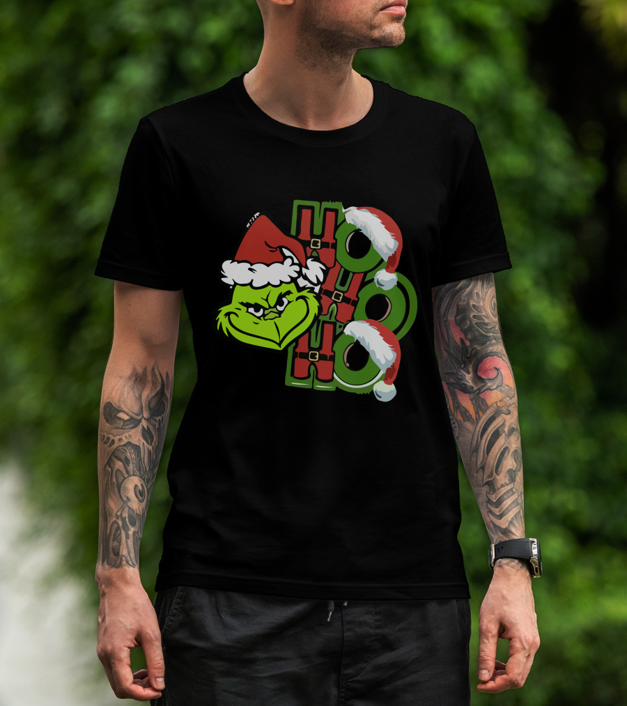 Ho Ho Ho Grinchmas With Santa Hats And Grinch Face T-Shirt