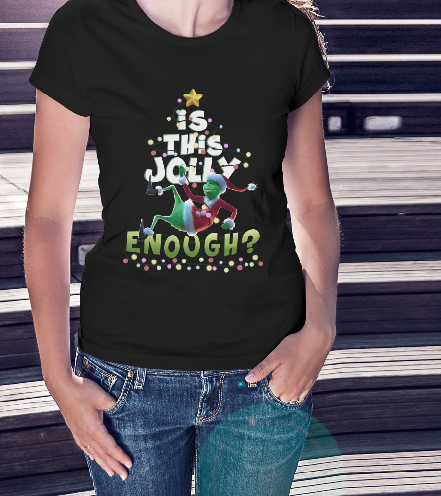 Is This Jolly Enough Grinch In Santa Suit Christmas Tree Lights T-Shirt