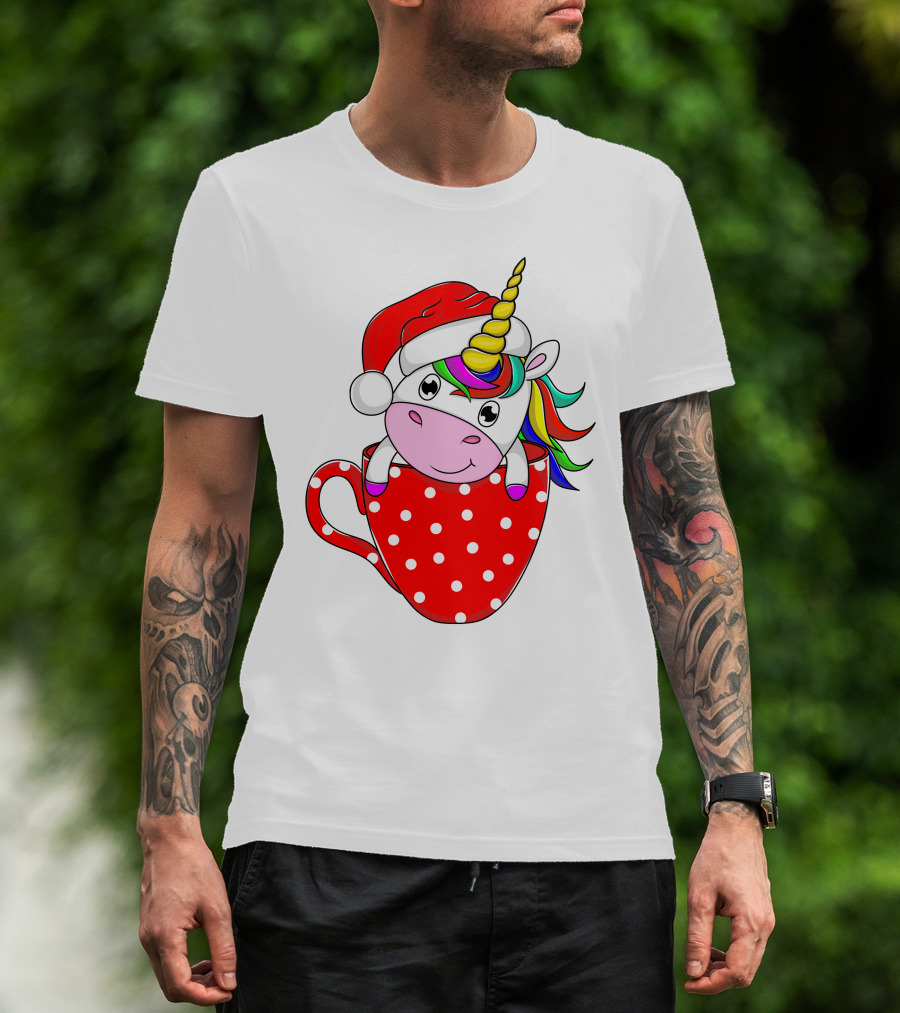 Santa Hat Unicorn In Polka Dot Red Cup T-Shirt
