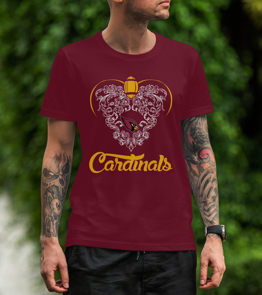 Cardinals Heart With Football And Arizona T-Shirt