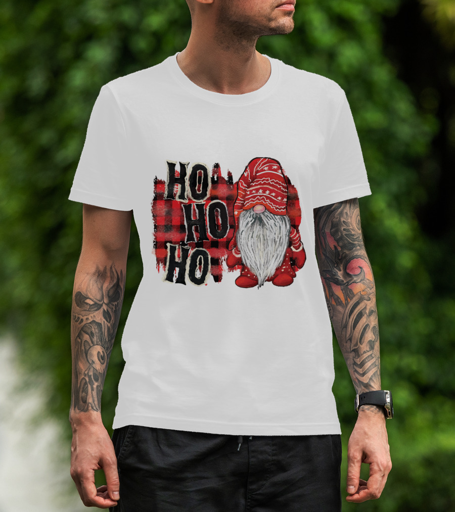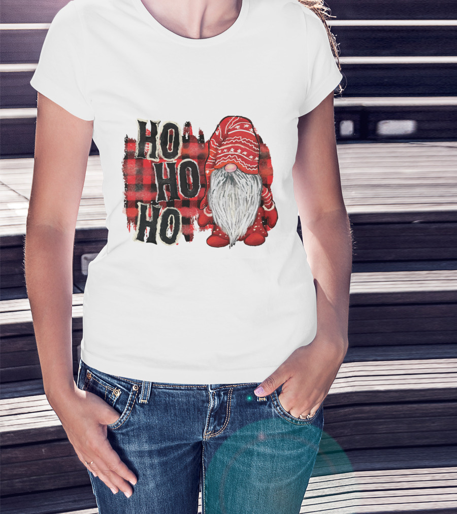 Watercolor Plaid Christmas Gnome Ho Ho Ho Red Holiday T-Shirt