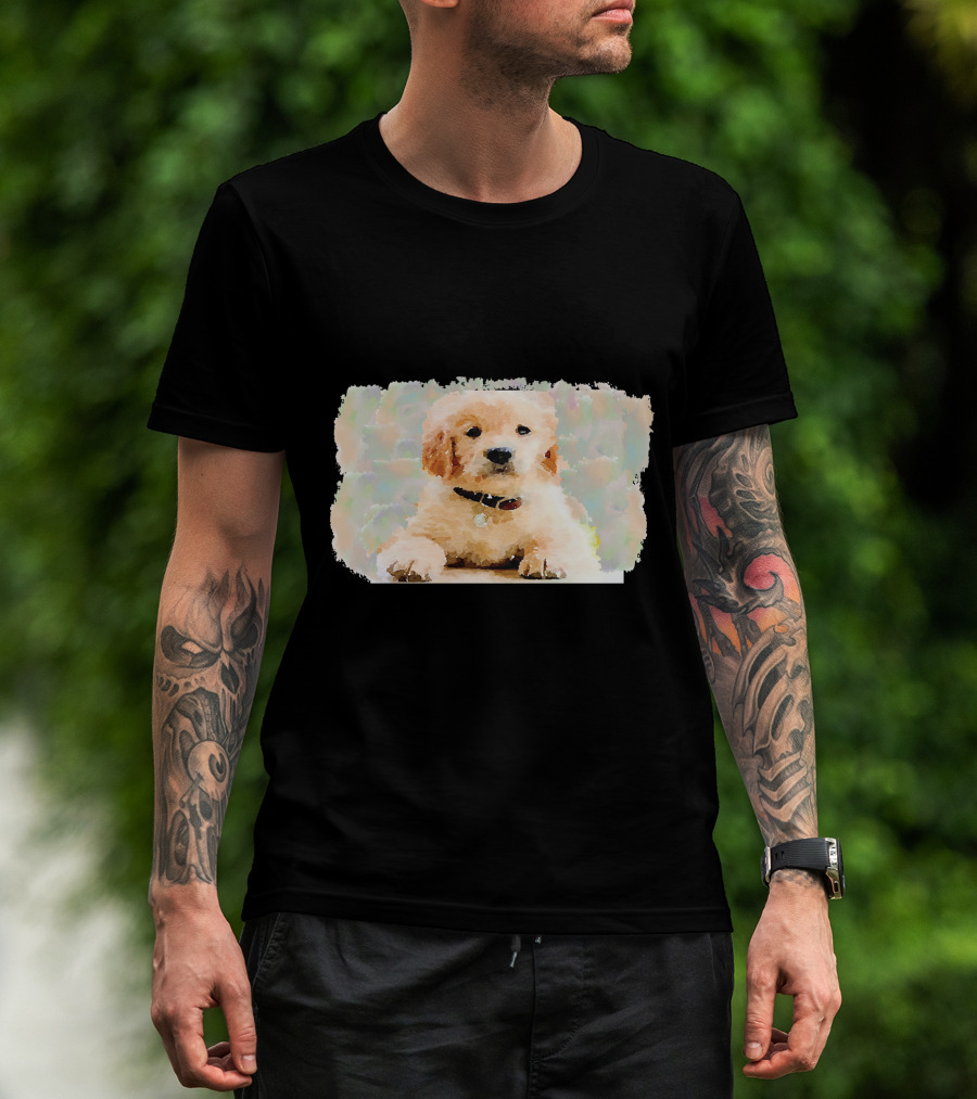 The Watercolor Puppy Dog Golden Retriever Pastel Abstract T-shirt is designed for everyday wear and a consistent fit. Fabric is pre-shrunk ring-spun cotton with durable stitching. See the size chart below for exact measurements.