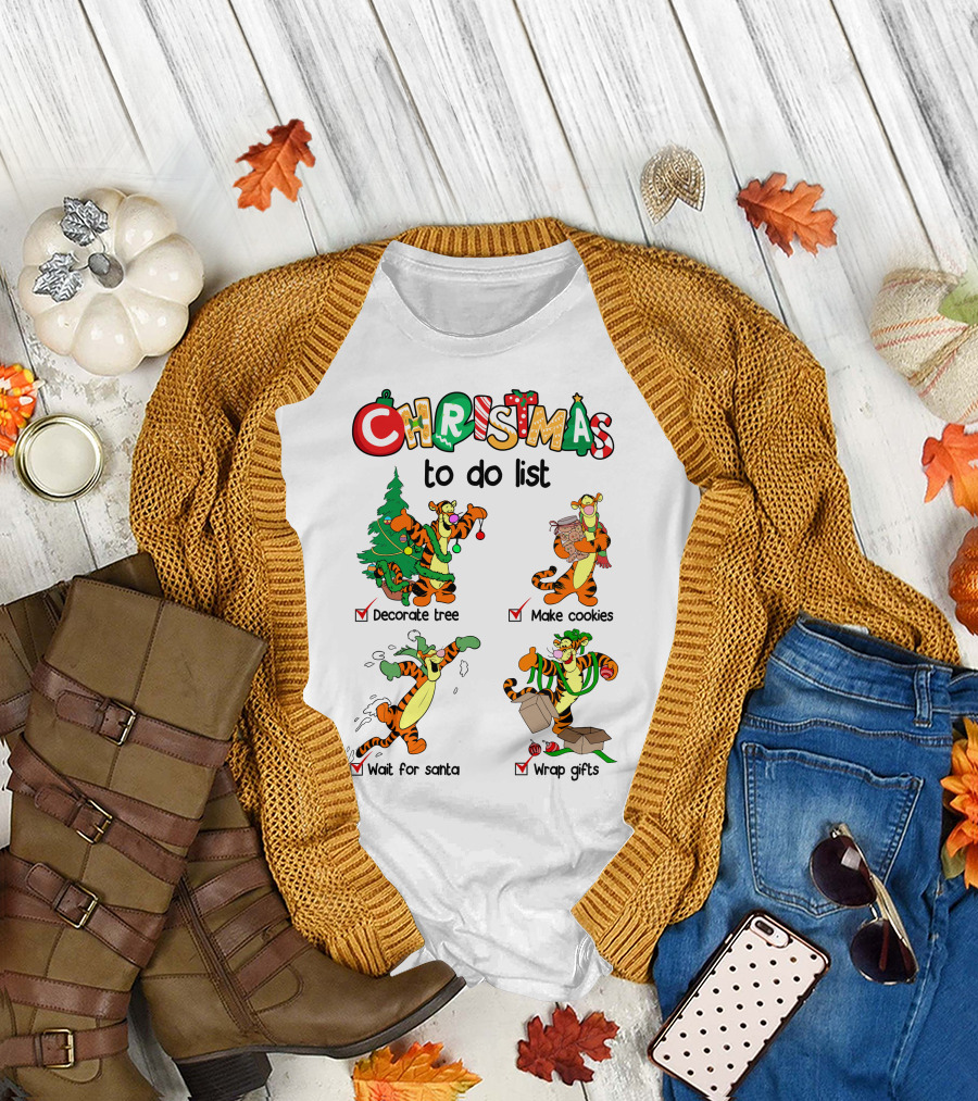 Christmas To Do List Tigger Decorate Tree Make Cookies Wait For Santa Wrap Gifts T-Shirt