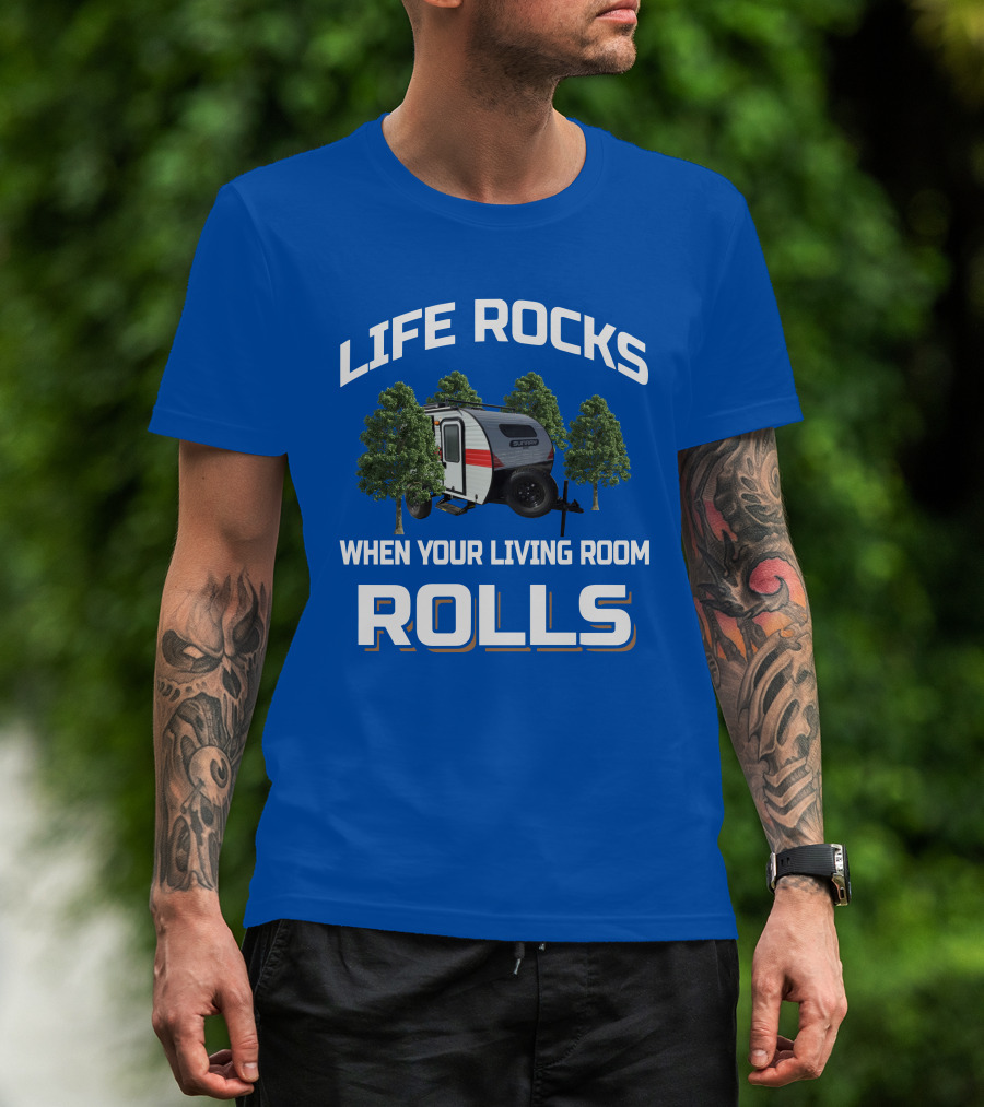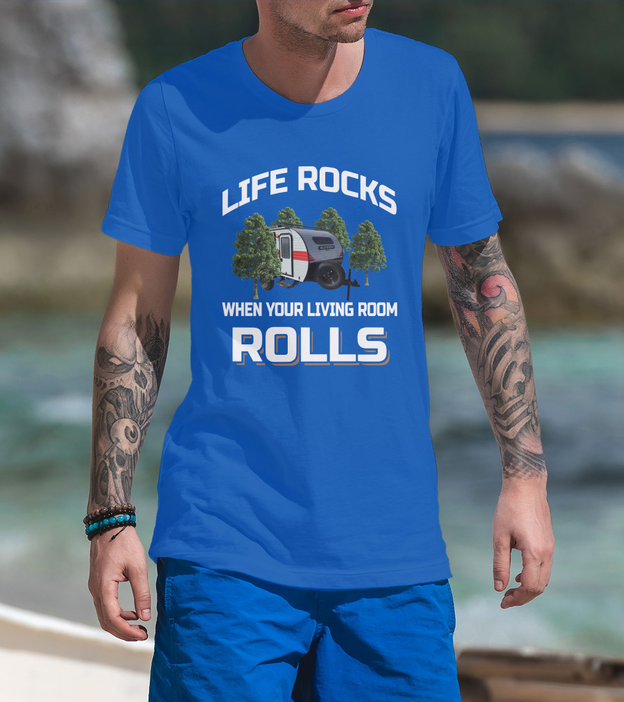 LIFE ROCKS WHEN YOUR LIVING ROOM ROLLS Sunray Sport Camper Adventure T-Shirt