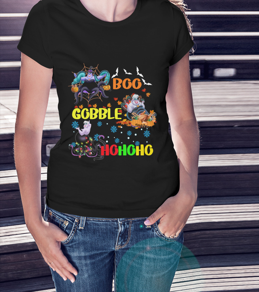 Ursula Boo Gobble HoHoHo Halloween Thanksgiving Christmas T-Shirt