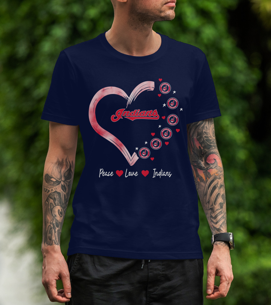 Peace Love Indians Heart Cleveland Indians T-Shirt