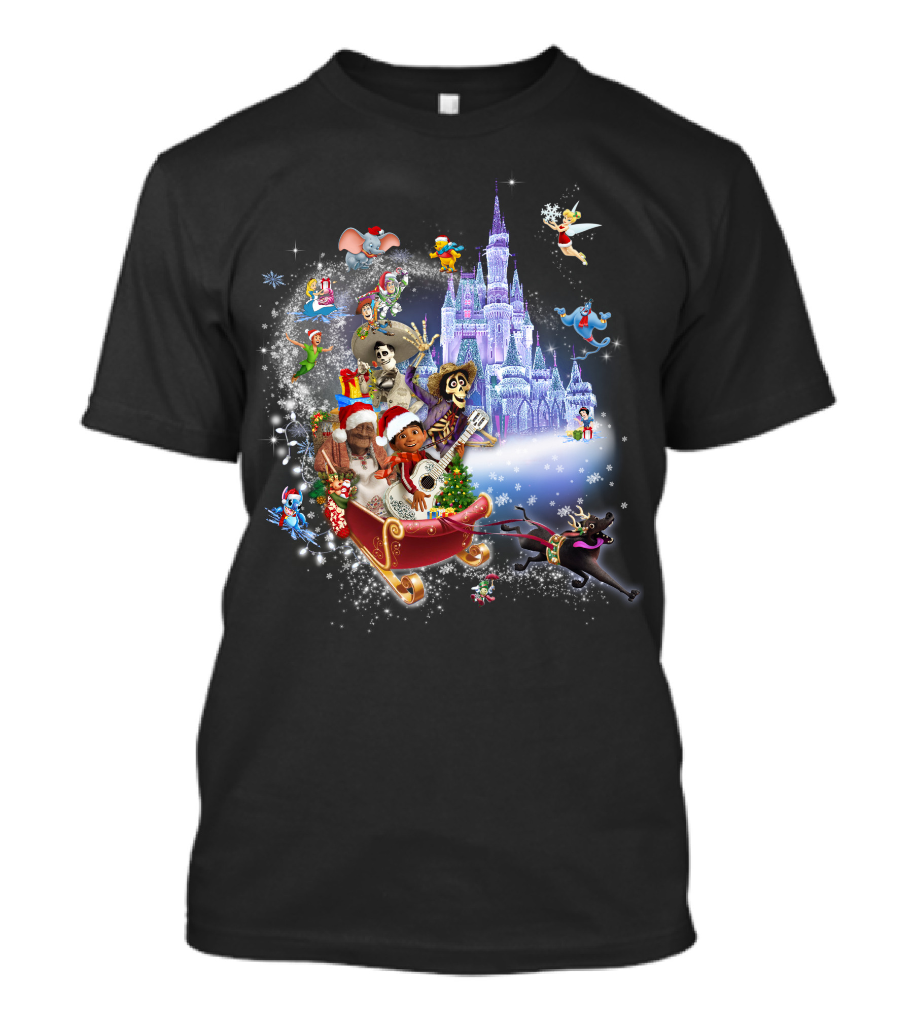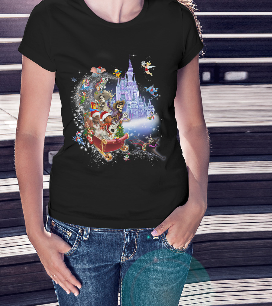 Coco Christmas Magical Disney Characters Castle Snowflakes Sleigh Holiday Fun T-Shirt