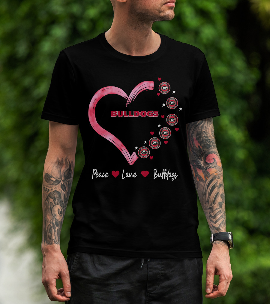 Peace Love Bulldogs Georgia Bulldogs Heart T-Shirt