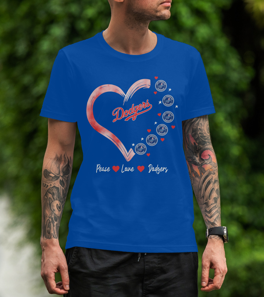 Peace Love Dodgers Heart Los Angeles Dodgers T-Shirt