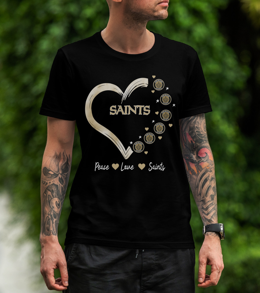 Peace Love Saints New Orleans Saints Fleur-de-Lis Heart T-Shirt