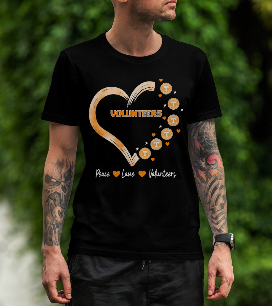 Peace Love Tennessee Volunteers Heart Shape With Stars T-Shirt
