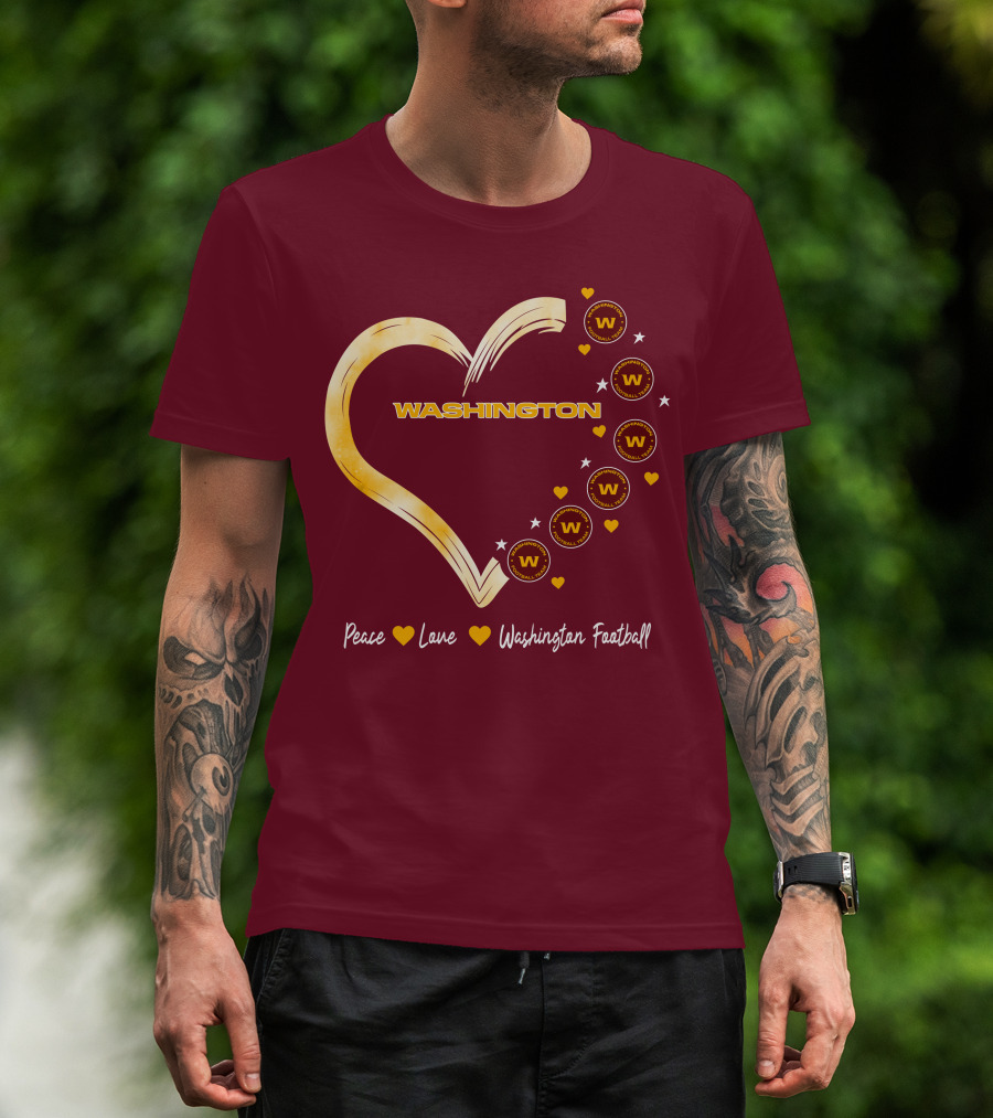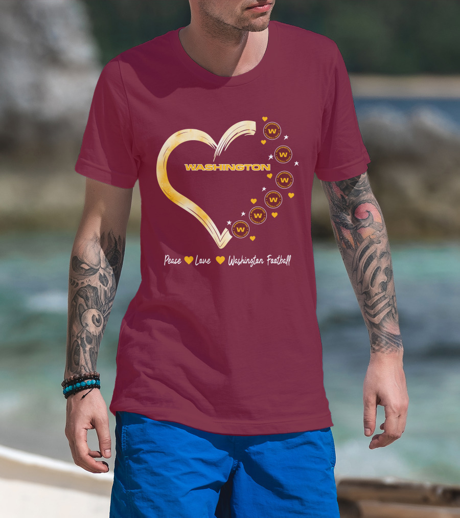 The Peace Love Washington Heart and Team Circles T-shirt is designed for everyday wear and a consistent fit. Fabric is pre-shrunk ring-spun cotton with durable stitching. See the size chart below for exact measurements.